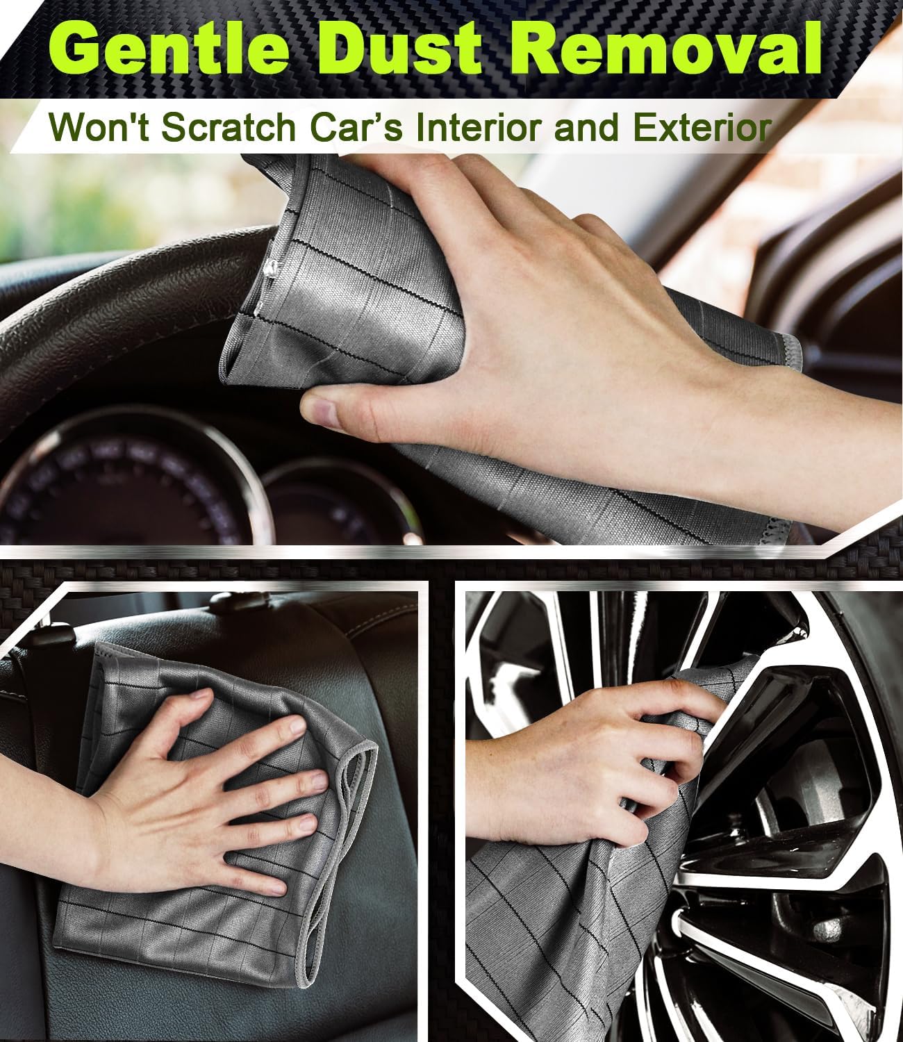 - Carbon Fiber Technology: This microfiber cleaning cloth is made with carbon elements that give it powerful cleaning ability, easily tackling fingerprints and grease. It's100 % safe on car paint, and perfect for shiny surfaces like glasses and windows