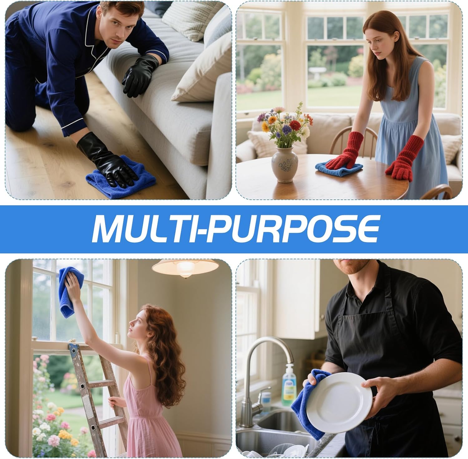 - Value Pack of 4 Blue Cloths: Comes with 4 premium blue cleaning cloths, perfect for rotating between rooms or tasks. Keep a set in the kitchen, garage, office, or bathroom for convenience.