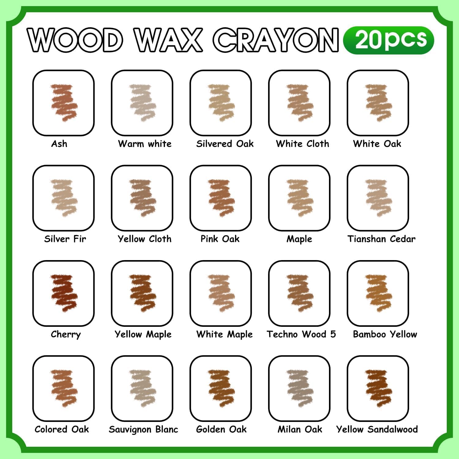 - 【20 Different Colors】: Wood furniture repair kit includes 20 colors: Maple, White Oak, White Maple, Pink Oak, Golden Oak, Yellow Maple, Bamboo Yellow, Colored Oak, Sauvignon Blanc, Milan Oak, White Cloth, Warm white, Yellow Cloth, Ash, Techno Wood 5, Silvered Oak, Silver Fir, Tianshan Cedar, Yellow Sandalwood, Cherry