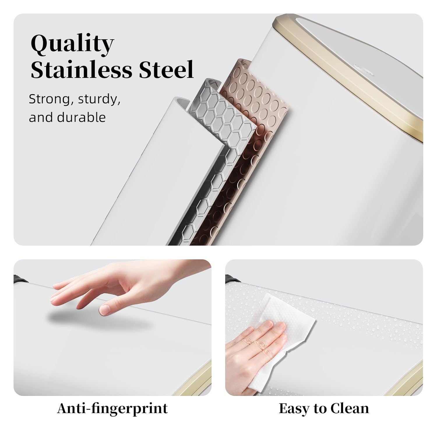 - Stainless Steel Armor & Hassle-Free Cleaning: Premium stainless steel exterior resists water, fingerprints, and corrosion. Seamless inner bucket prevents leaks, while the wipe-clean surface eliminates sticky residue in seconds.