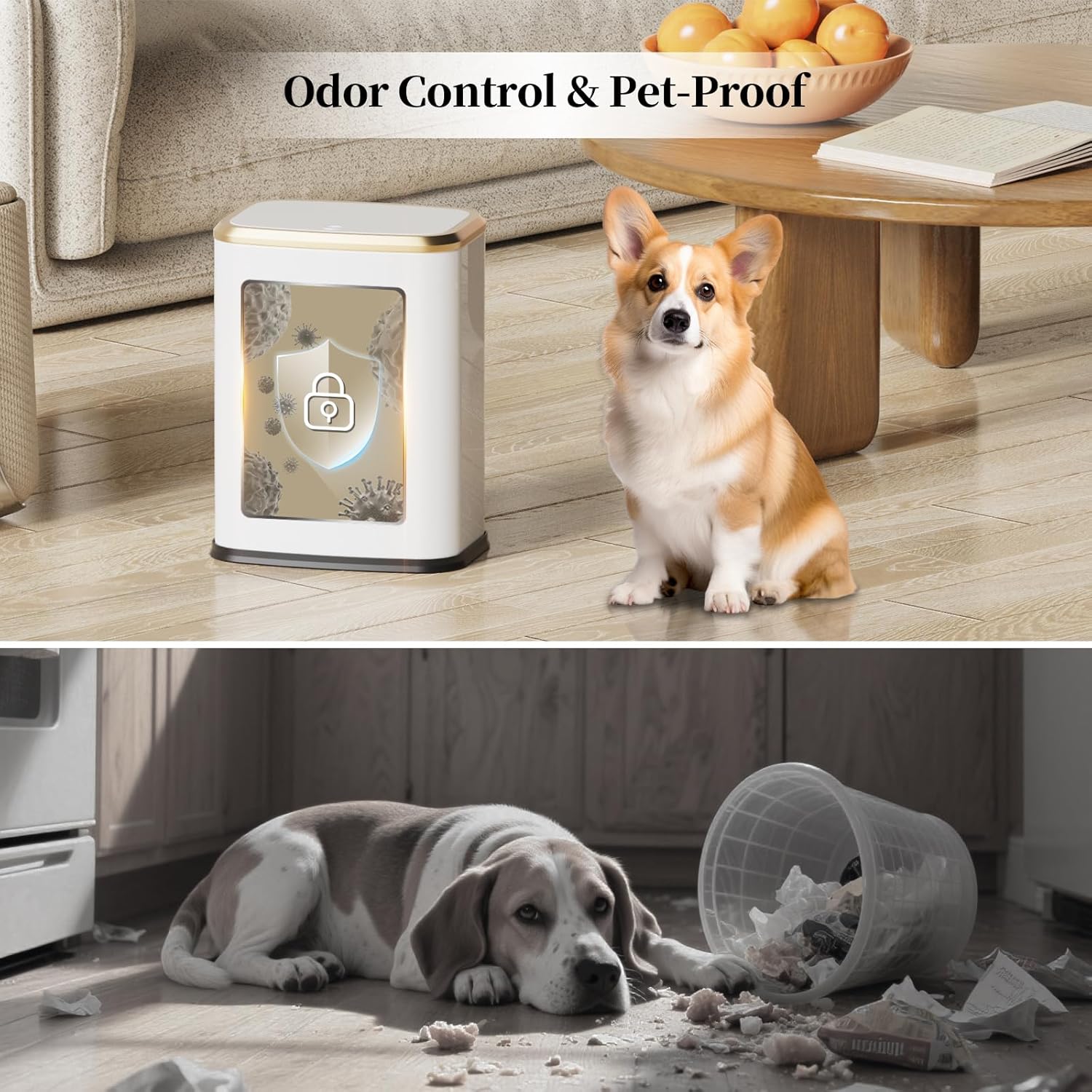 - Odor-Blocking Secure Closure: Snug-fitting lid creates a tight seal when closed, trapping unpleasant smells and preventing your dogs getting into it. Removable inner bucket and trash bag fixing hole allow easy liner replacement, keeping spaces like living rooms and dorm rooms fresh and tidy.