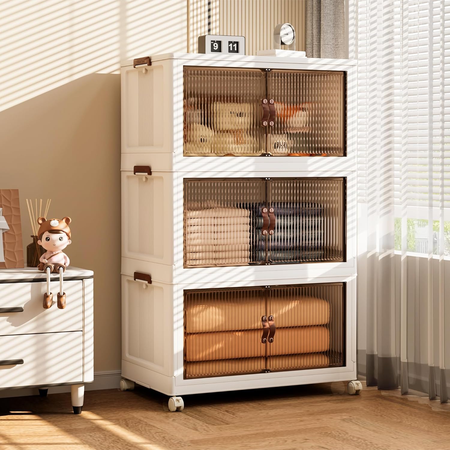 - 【High Quality & Safety】Made with high-impact polypropylene (PP), these bins ensure durability and protection for your belongings. The ABS front panel adds clarity and strength. They can also be used as a plastic storage cabinet with doors, offering more convenience for organizing items.
