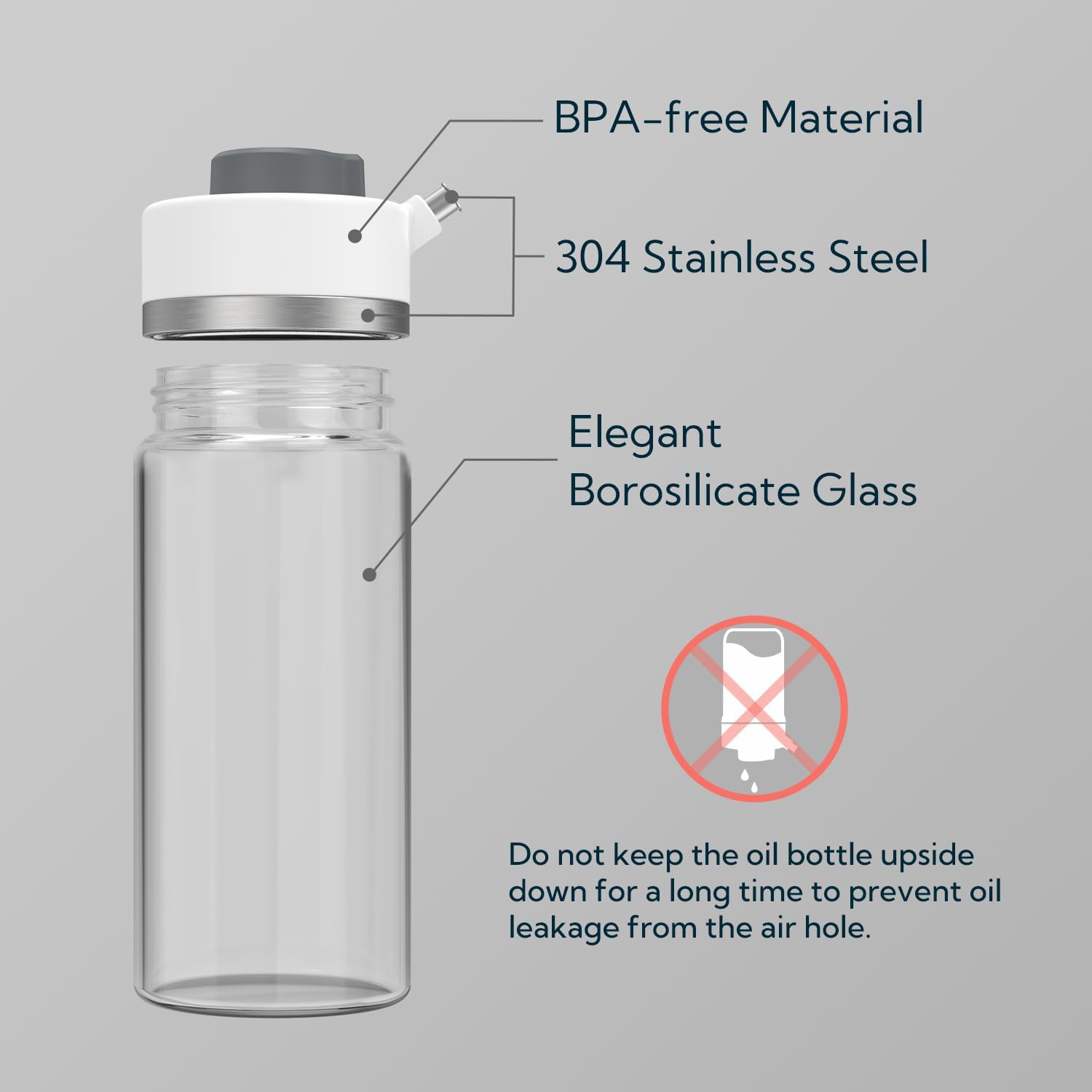 - Elegant Borosilicate Glass and BPA-free Material: Our oil dispenser bottle 2-piece set is made of high-quality borosilicate glass and 304 stainless steel, which is more elegant and safer. The whole product is made with BPA-free material