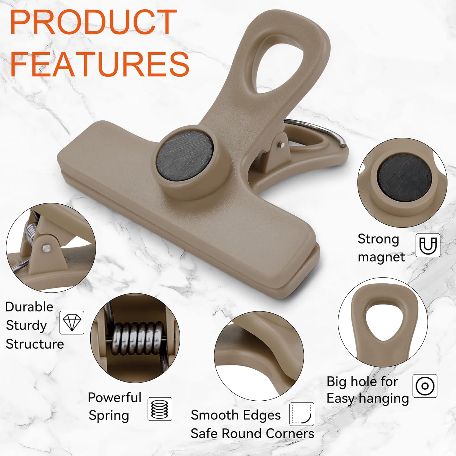 TACGEA Chip Clips, Magnetic Bag Clips with Air Tight Seal for Food Storage, 8 Pieces, Neutral Color