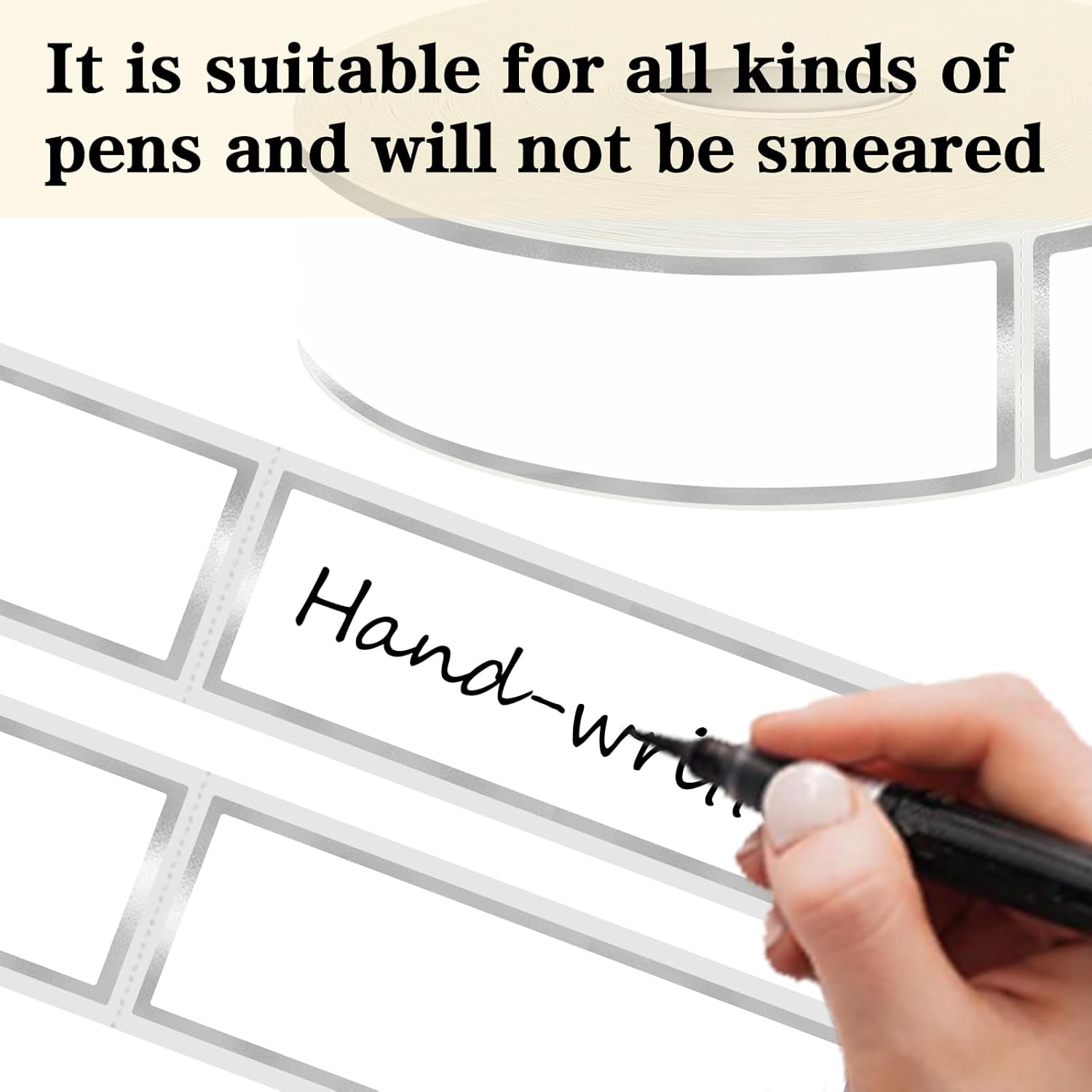 - Packaging: 500 pcs on a roll,Each measures 1” X 3”,Blank and white with silver border