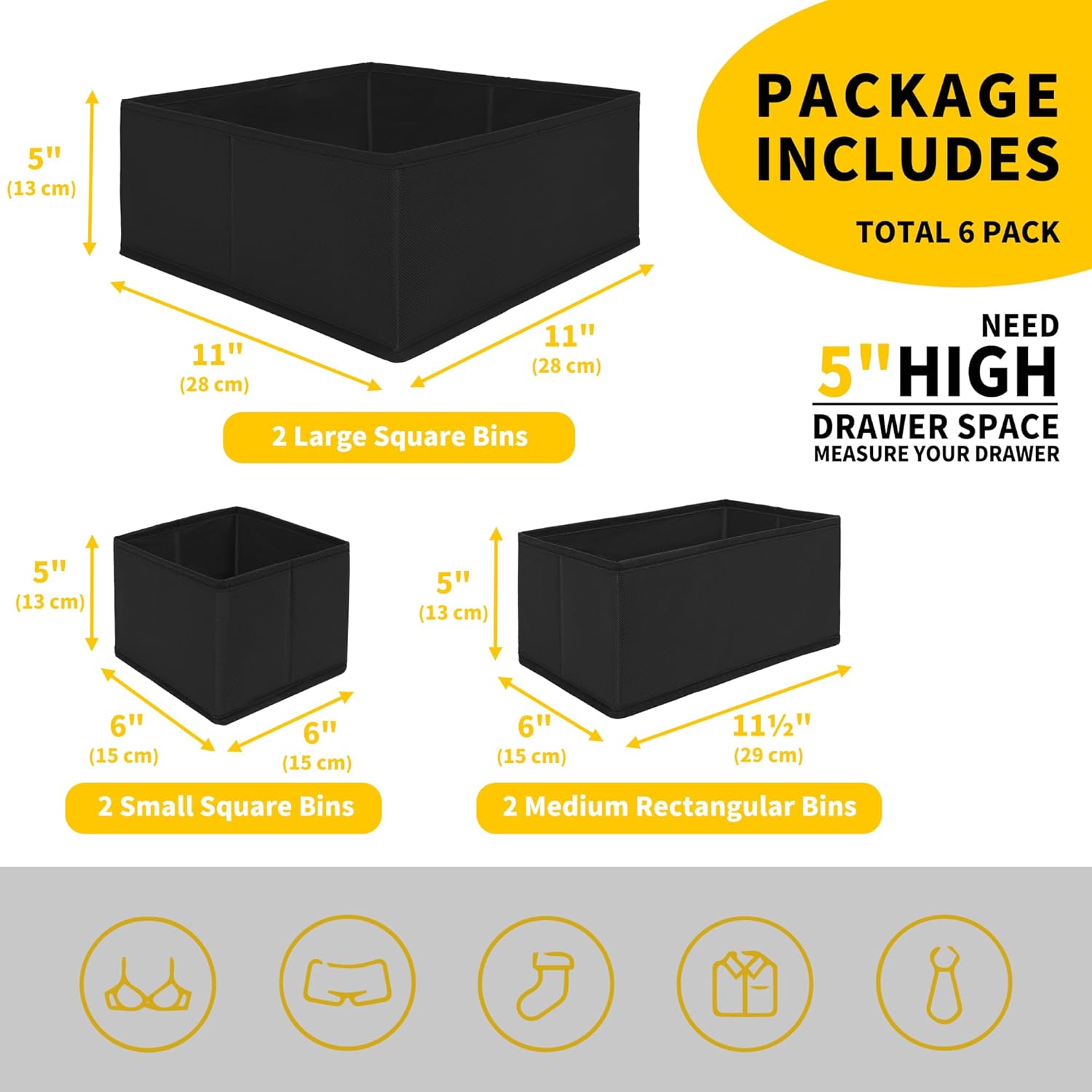 Cupic Cupid Drawer Organizer, Dresser Organizers, Foldabe Drawer Organizer Clothes, Closet Organization and Storage Dividers for Socks, Underwear and Diaper, Set of 6, Black