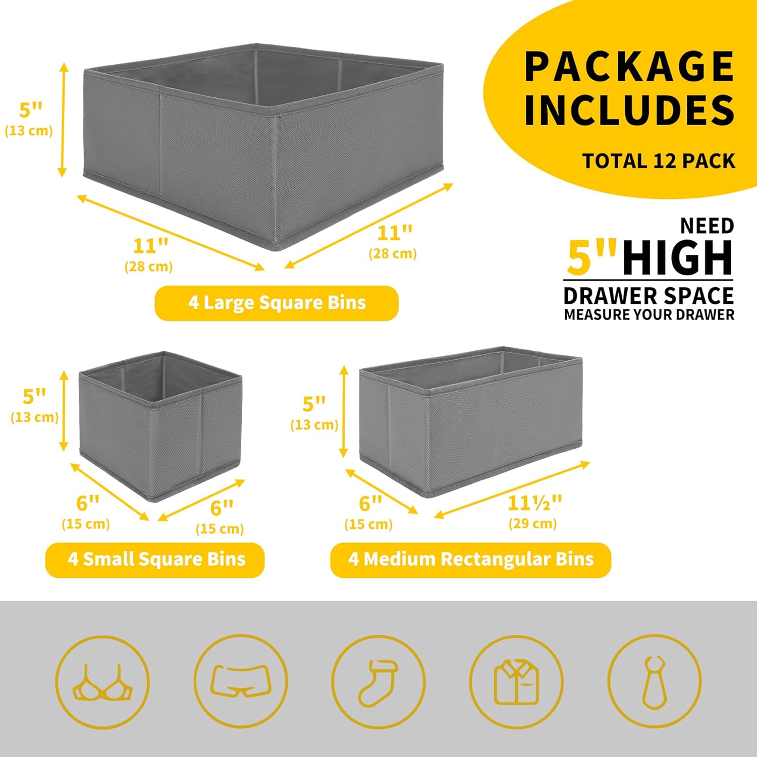 Cupic Cupid Drawer Organizer, Dresser Organizers, Foldabe Drawer Organizer Clothes, Closet Organization and Storage Dividers for Socks, Underwear and Diaper, Set of 12, Gray