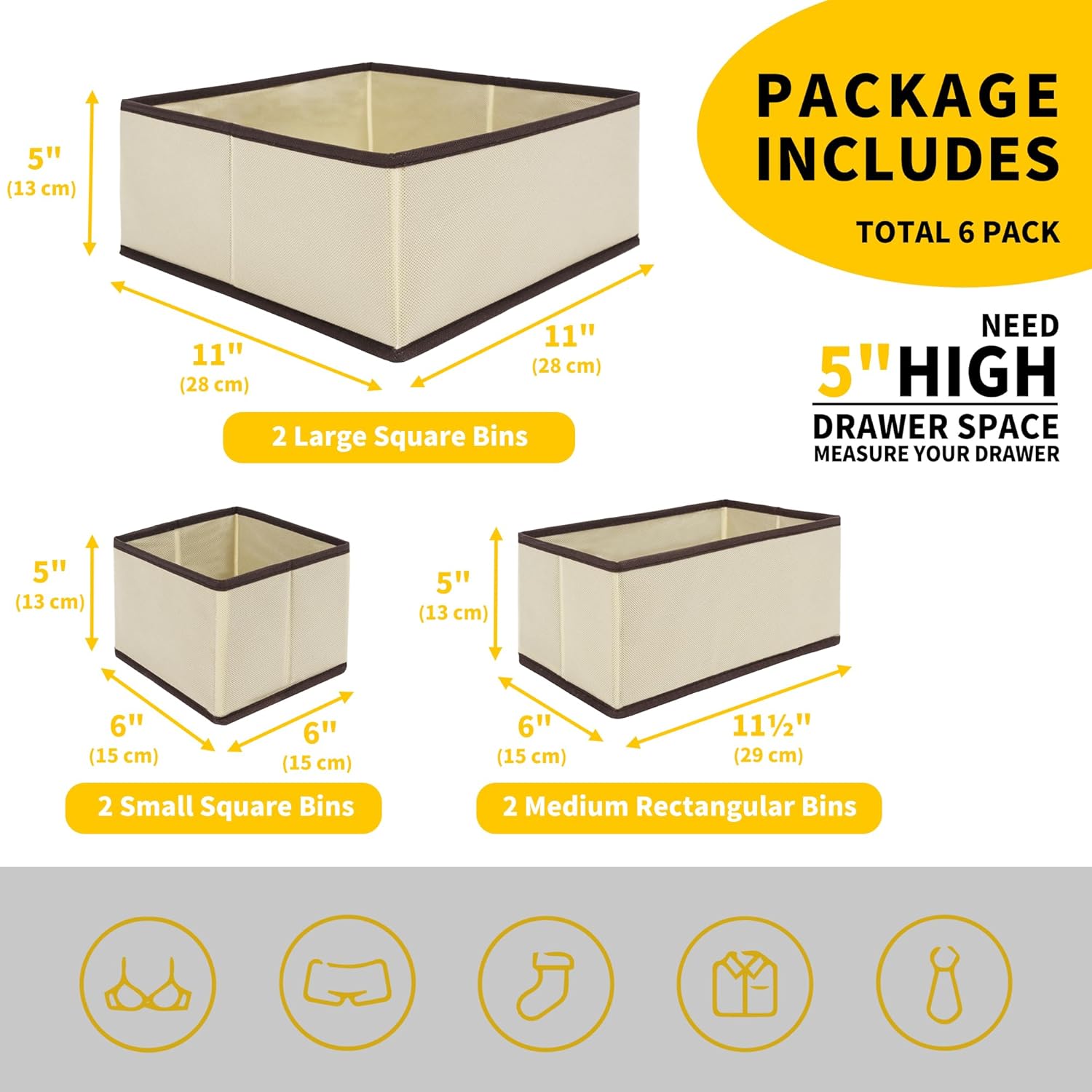 - Multi-Size Bins: Three sizes of bins to organize clothes, underwear, socks, and more. Maximize space while keeping everything neatly separated.