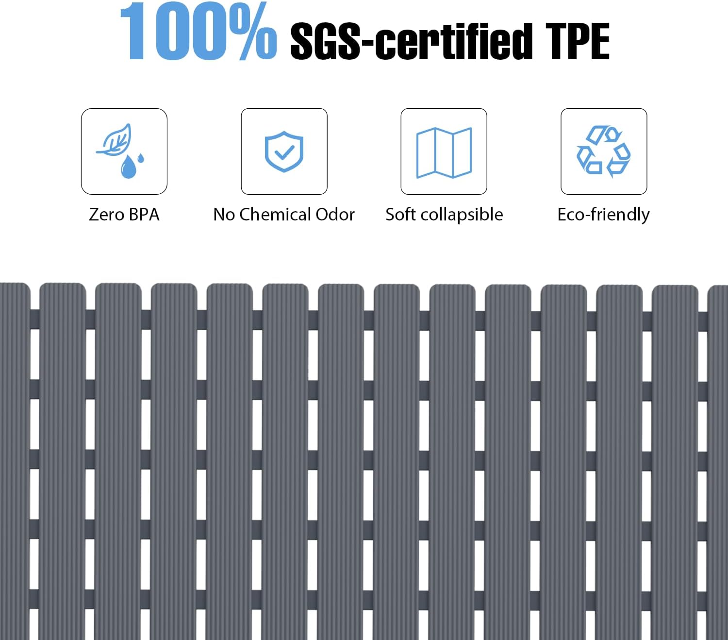 - Eco-Certified Bathtub Mat Material: This non-slip bath mat for shower/tub is crafted with 100% SGS-certified TPE (Test Report NO.CANEC25008026405), featuring Zero BPA & Chemical Odor,trusted by 12,000+ Families for Baby Bath Time Safety.