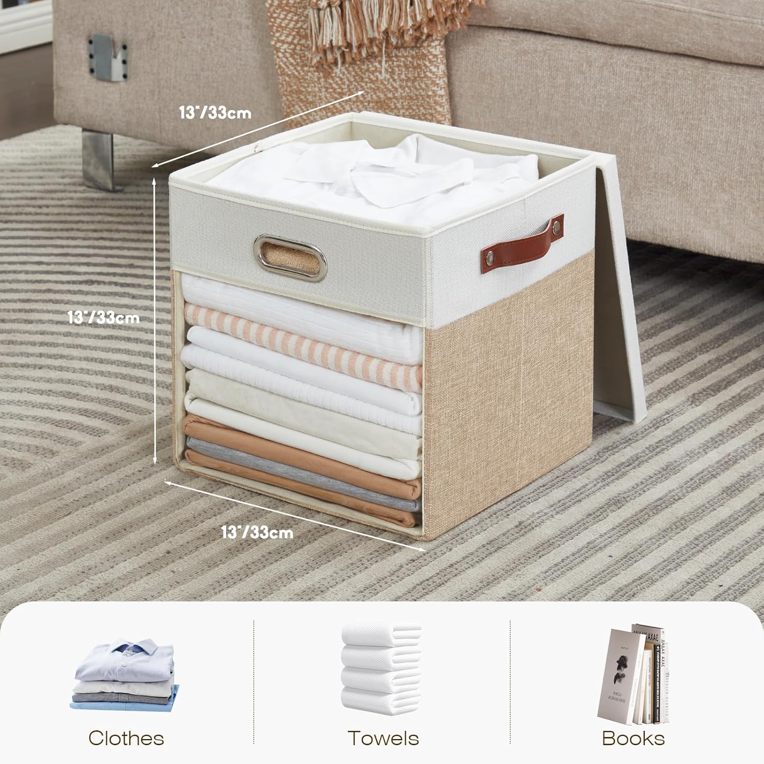 - Practical Design: The storage cubes with a lid size 13 x 13 x 13 inches (33 x 33 x 33 cm), which can perfectly organize closets, shelves, or children's rooms while keeping the space tidy and fashionable. The PVC clear window makes it effortless to identify the content at a glance, allowing you to easily find what you need!