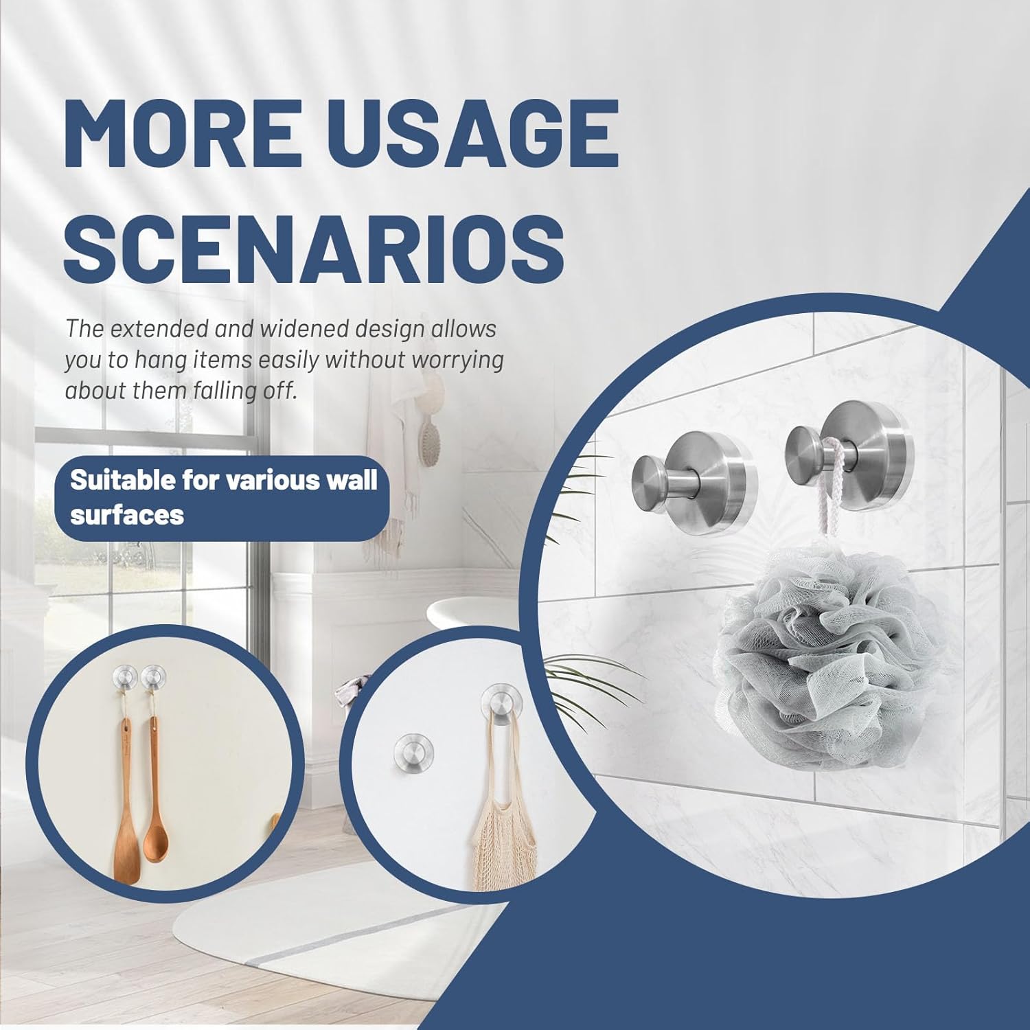 - 【Strong and Reliable Suction Power】 Featuring advanced vacuum adsorption technology, these bathroom hooks securely attach to smooth surfaces like bathroom tiles and glass doors, ensuring a firm hold for long-lasting use without slipping or falling.
