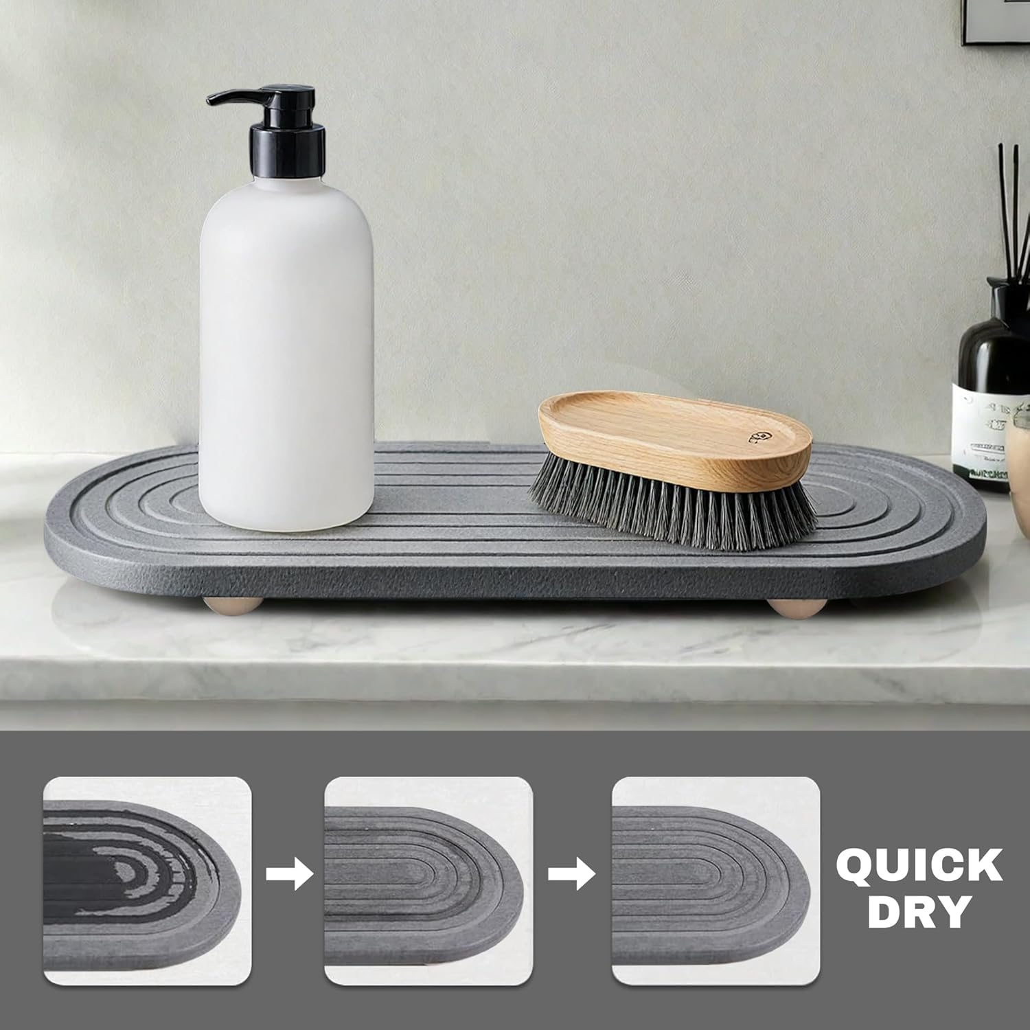 - LIGHTNING-FAST DRYING POWER - This Instant Dry Sink Caddy Organizer eliminates moisture in 60 seconds, thanks to its ultra-absorbent design. Say goodbye to puddles and water spots on countertops—it keeps kitchens and bathrooms instantly tidy and dry.