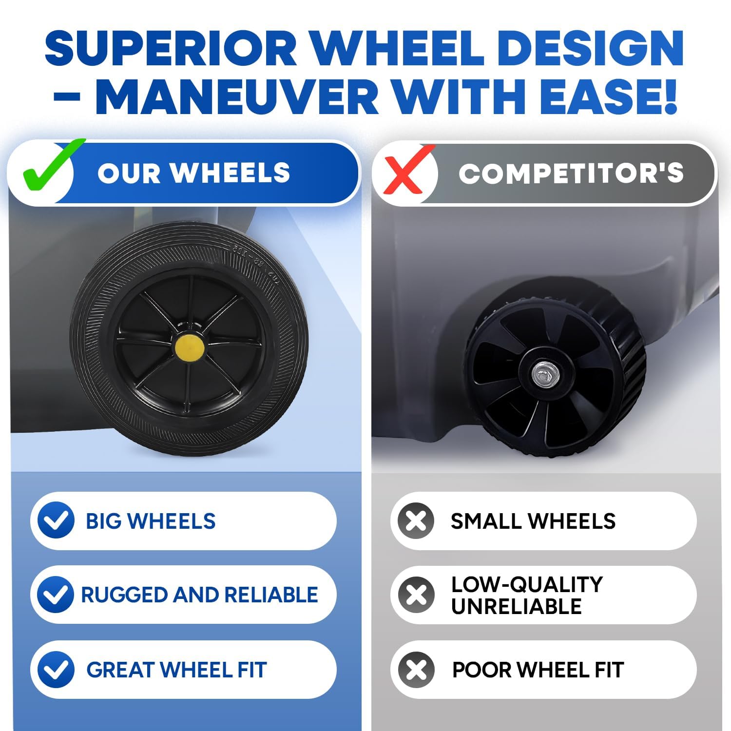 - Durable HDPE Construction: Made from high-density polyethylene, this plastic trash can rollout is built to withstand heavy use and harsh outdoor conditions for long-lasting performance