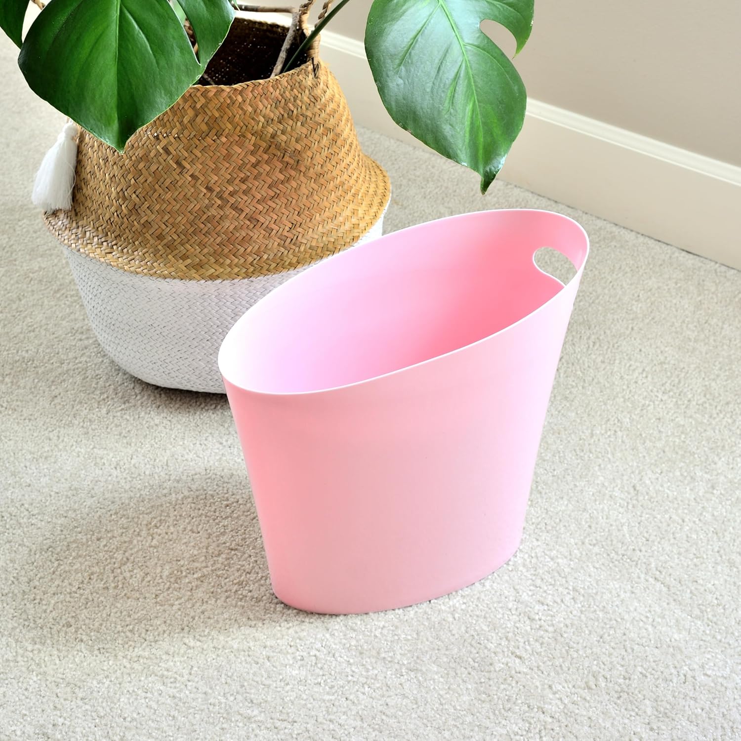 - Functional and Versatile- 9.5 inch in height small plastic trash wastebasket with handles is perfect size in your home office, living room, study room, kitchen, and bathroom.