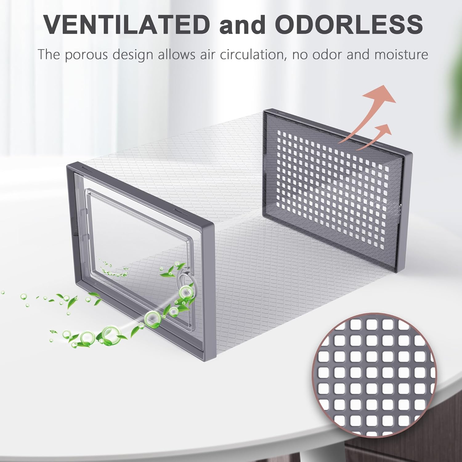 - Sturdy and Ventilation Design: The two lids of the shoe organizer are made of ABS plastic material, which is very stable after assembly. The rear ventilation holes make air circulation and odor prevention