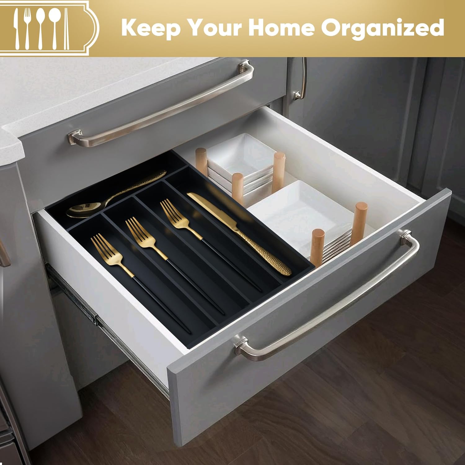 - Keep Your Space Neat & Tidy: This sleek 5-compartment silverware organizer fits perfectly in any drawer or on your countertop, letting you see everything at a glance—no more digging through clutter! It’s a space-saver that makes grabbing your go-to utensil a breeze, whether it’s your favorite knife or a spoon. Pro tip: Measure your drawer before ordering to ensure the perfect fit.