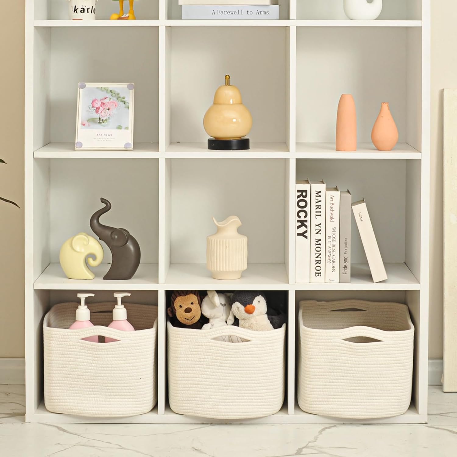Large Storage Baskets for Organizing Shelves, Woven Cotton Rope Bins for Baby Nursery Organization, Book Toy Towel Organizer, 17"x13"x9.5", 3 Packs, Off White