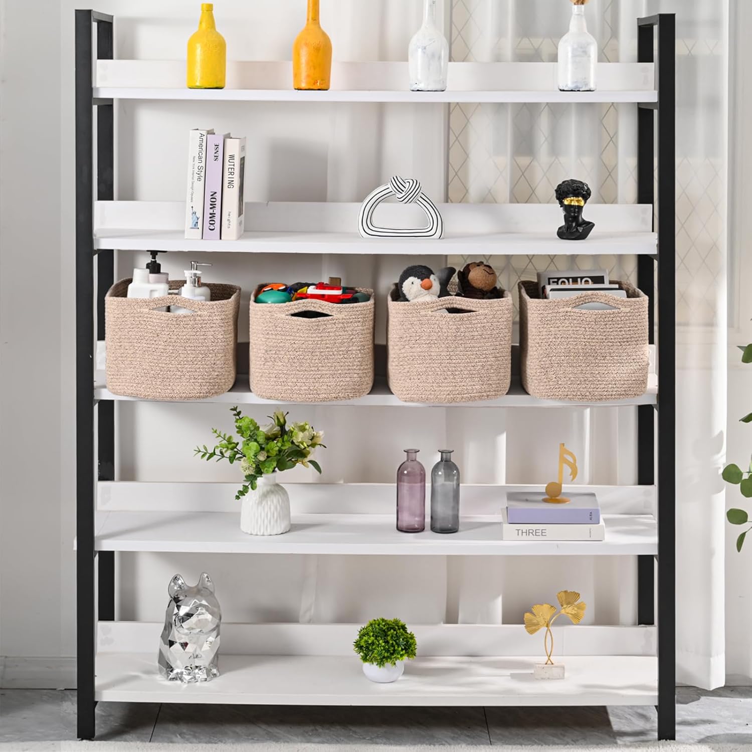 - DECORATIVE CUTE WEAVED BASKETS: ICERZCZ is dedicated to tidy and organizing beautifully for the home. A stylish and practical way to display eye-catching items on tables and counters. Not only will our shelf baskets set help you organize your items, its sleek, sophisticated shape and neutral colors will complement any decor