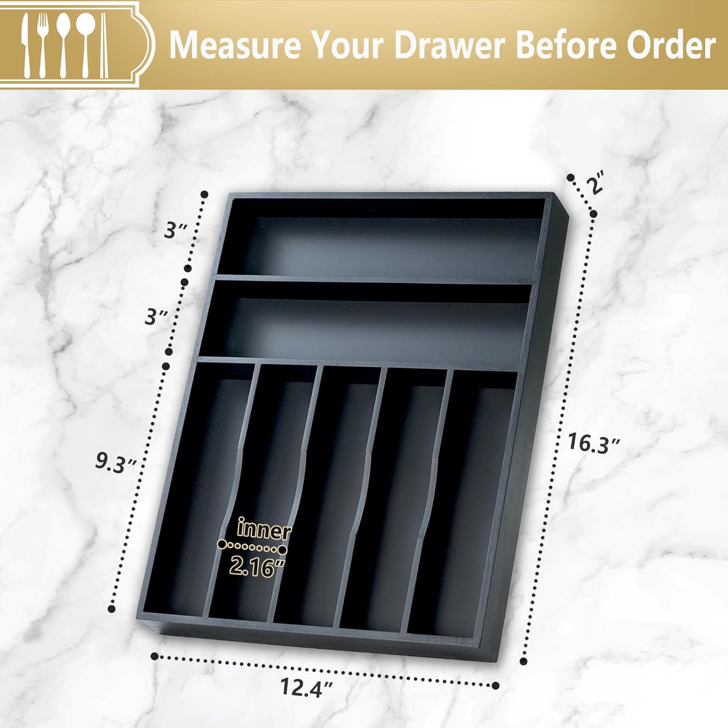 Silverware Organizer, 12.5 Inch Utensil Organizer Kitchen Drawer Organizer Bamboo Silverware Holder Cutlery Tray Organizer in Drawer Flatware Organizer Tray(7 slots, Black)