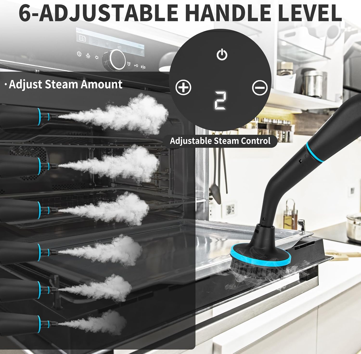 - 【𝟔-𝐓𝐞𝐦𝐩𝐞𝐫𝐚𝐭𝐮𝐫𝐞 𝐀𝐝𝐣𝐮𝐬𝐭𝐦𝐞𝐧𝐭】:Our steam cleaner have 6 levels of adjustment that can be adjusted to your specific cleaning needs, humidity with the "+" or "-" buttons and can handle a wide range of cleaning tasks. It’s all-purpose and can go and clean out any hard to reach gaps, corners, angles, and also various surfaces.
