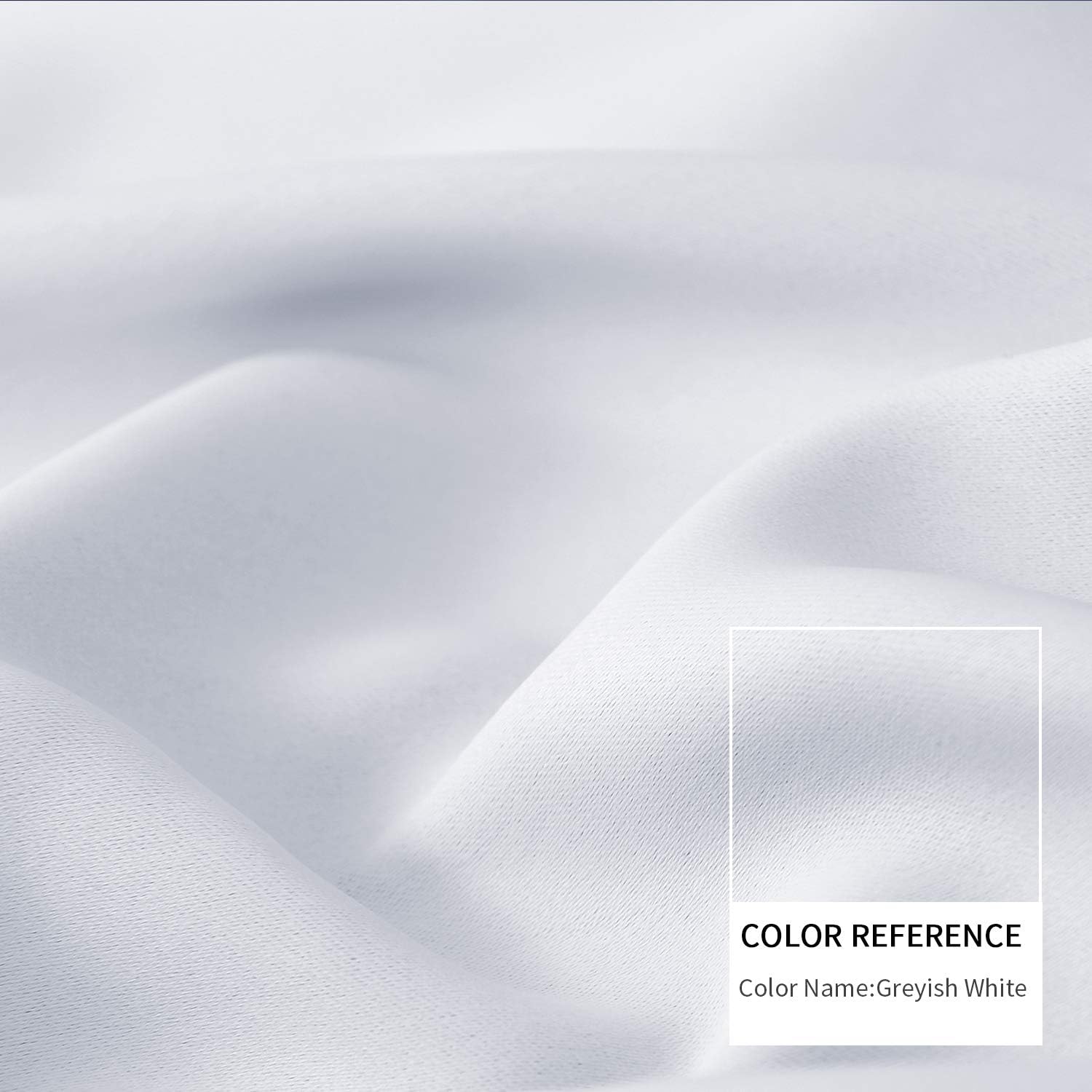 - Package Includes: Set of 2 greyish white blackout curtains; each panel measures 34 Inch wide by 40 Inch long.