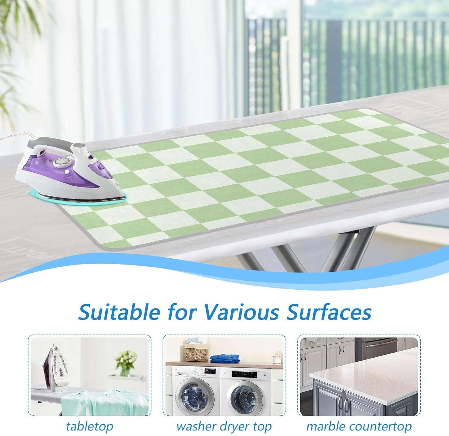 - Widely Used: This ironing mat for table top can not only be used as an ironing pad, but also as a heat-resistant cover pad on washing machines, dryers, or any other countertops, ensuring that the surface is free from dust, scratches, and other minor surface damage, very suitable for home and travel use