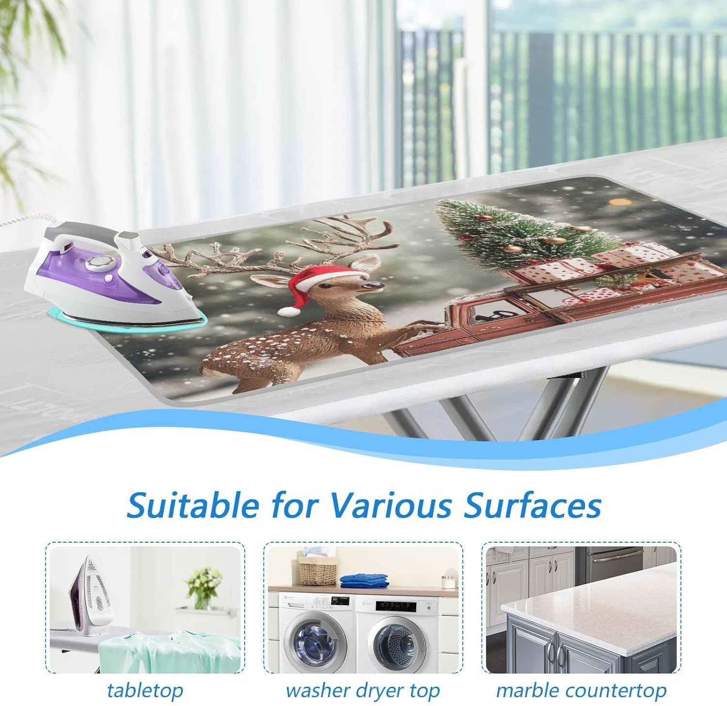 Christmas Tree Elk Truck Ironing Mat for Table top Portable Ironing Pad Blanket for Washer Dryer Countertop Travel