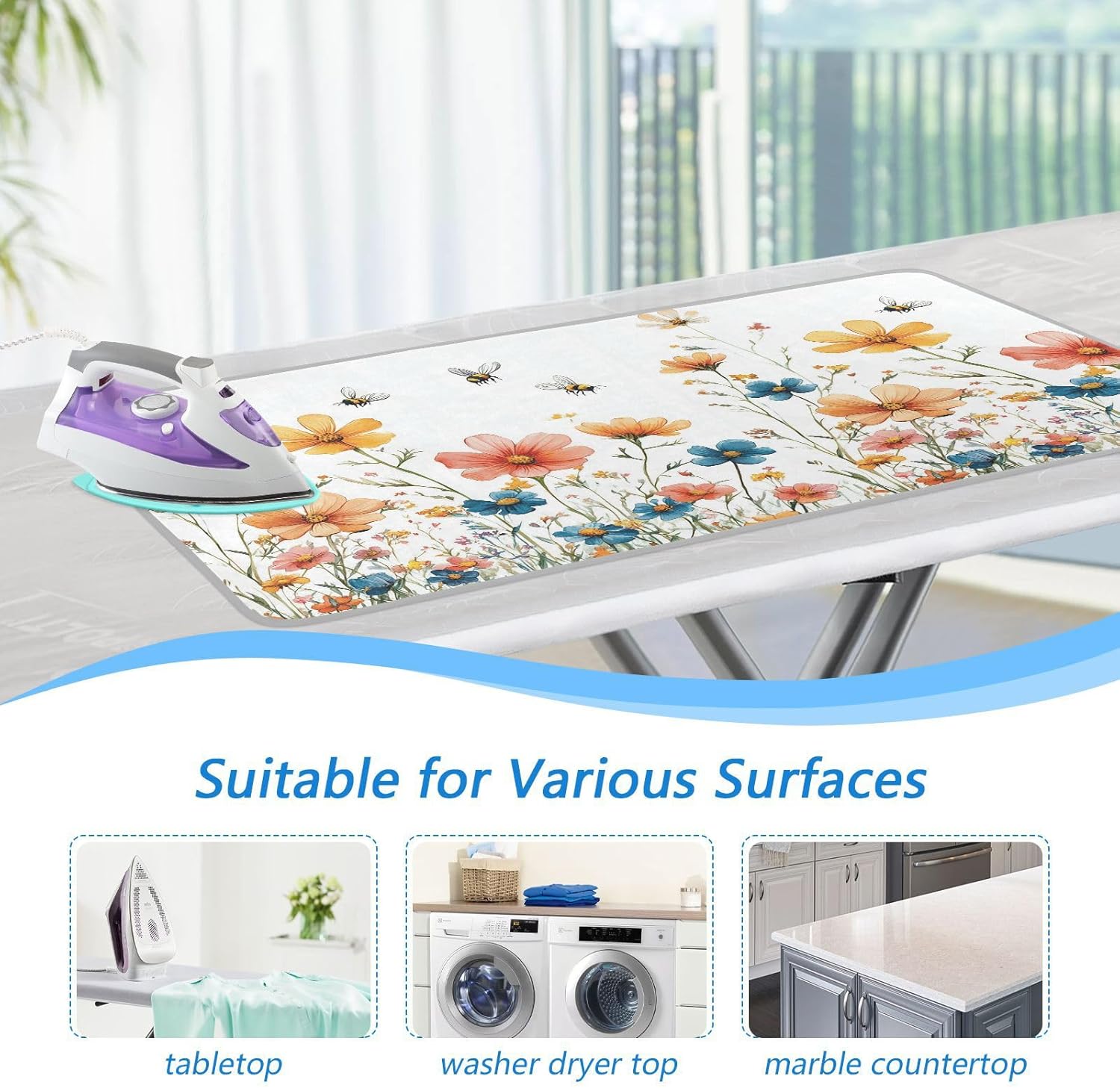 Yellow Wildflower Bees White Ironing Mat for Table top Portable Ironing Pad Blanket for Washer Dryer Countertop Travel