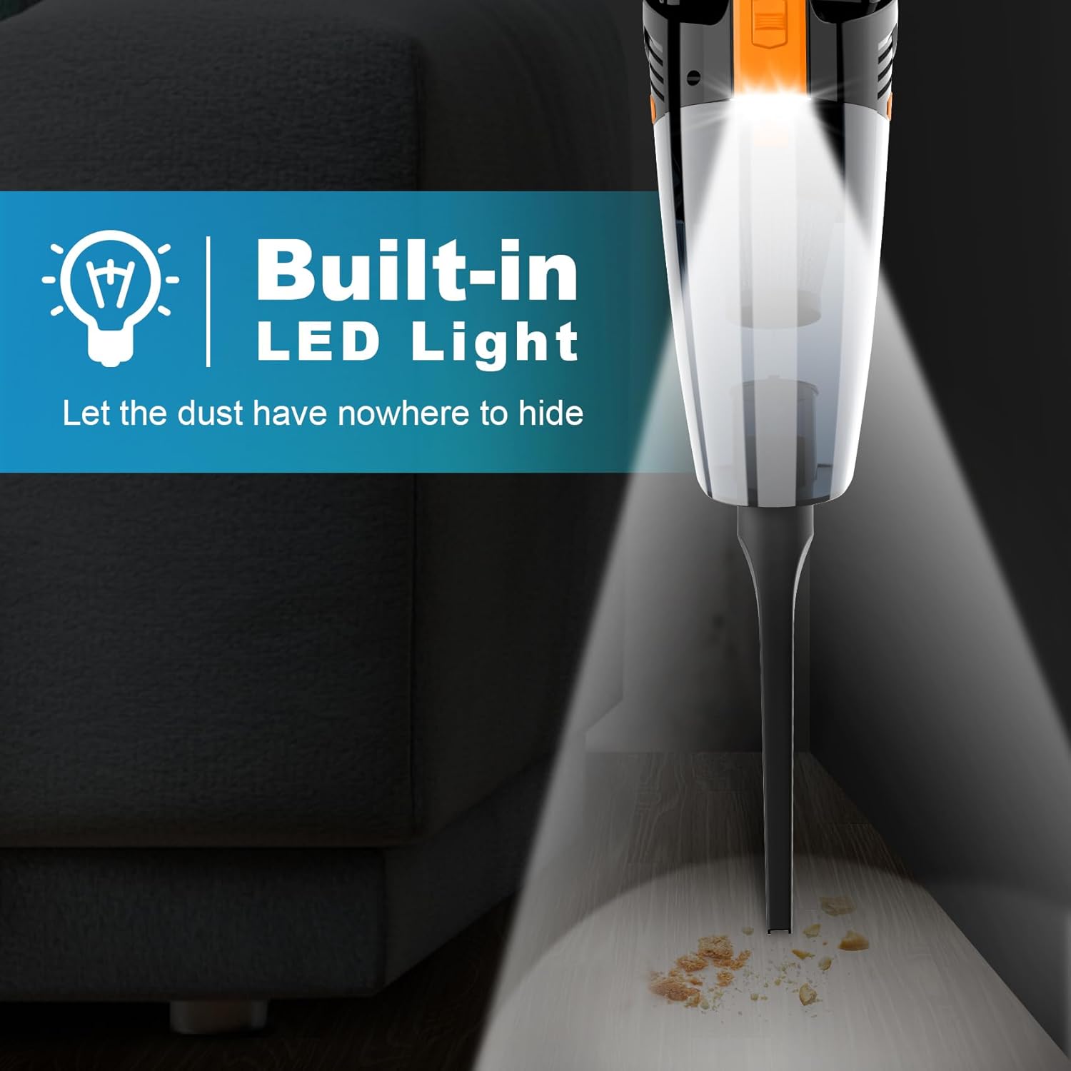 Handheld Vacuum Cordless Car Vacuum Portable with LED Light, High Power Suction, Lightweight Rechargeable Hand Vacuum, Hand Held Vacuum Cleaner for Car Home Office, Pet Hair, BlackOrange