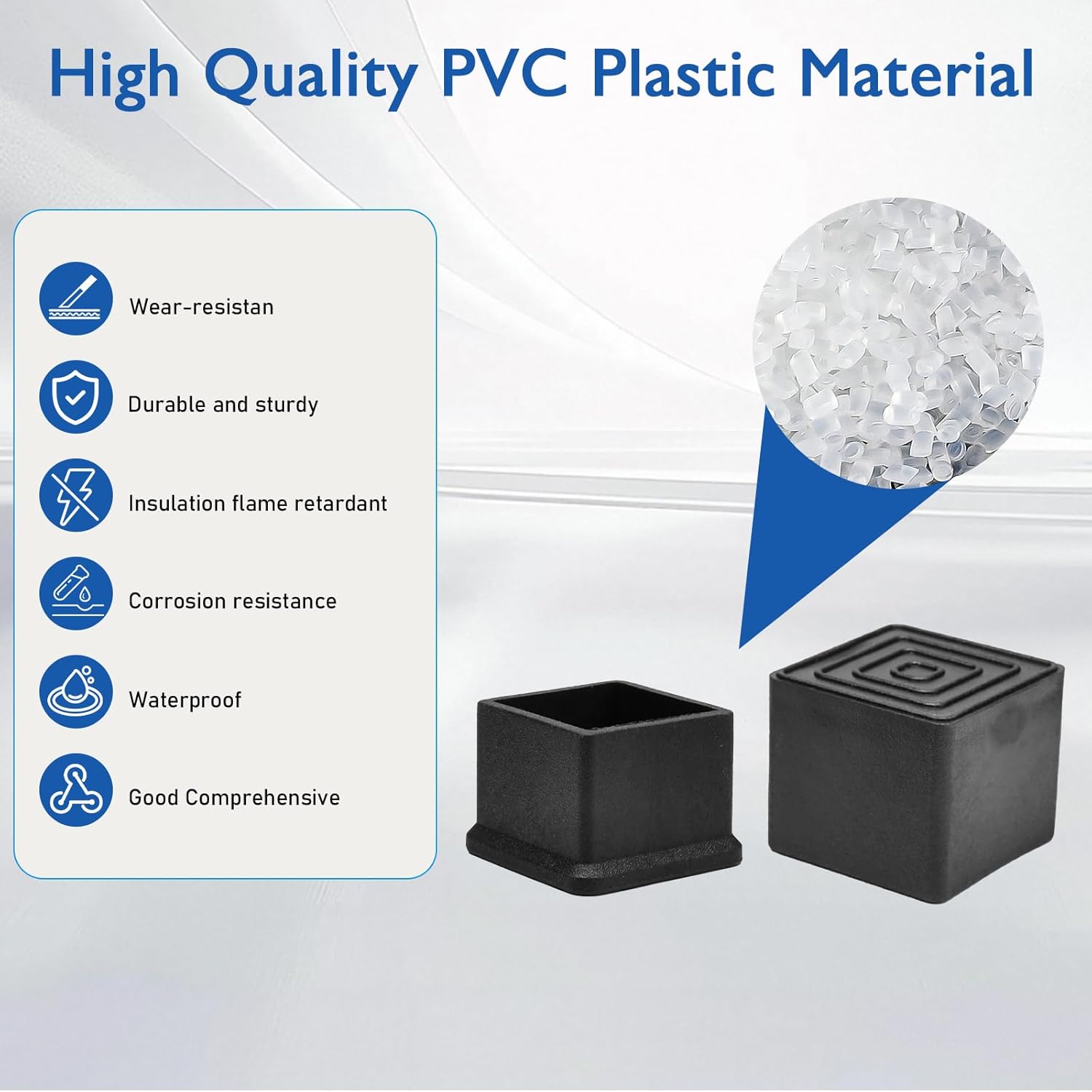 - Dimension and Quantity: 32 black square chair leg floor protectors, suitable for 0.74"x0.74"(19x19 mm) OD square chair legs; We offer different size options,including 5/8" - 4" square chair feet, allowing you to find the perfect fit for your specific needs (Please confirm that you are measuring the outside, not the hole)