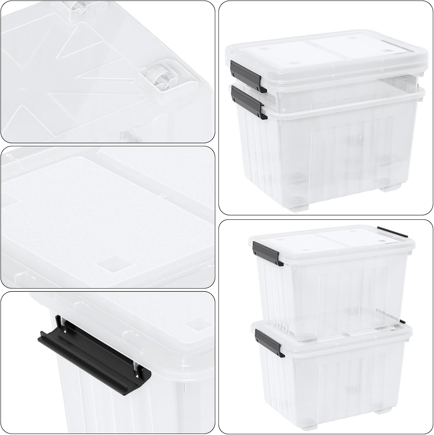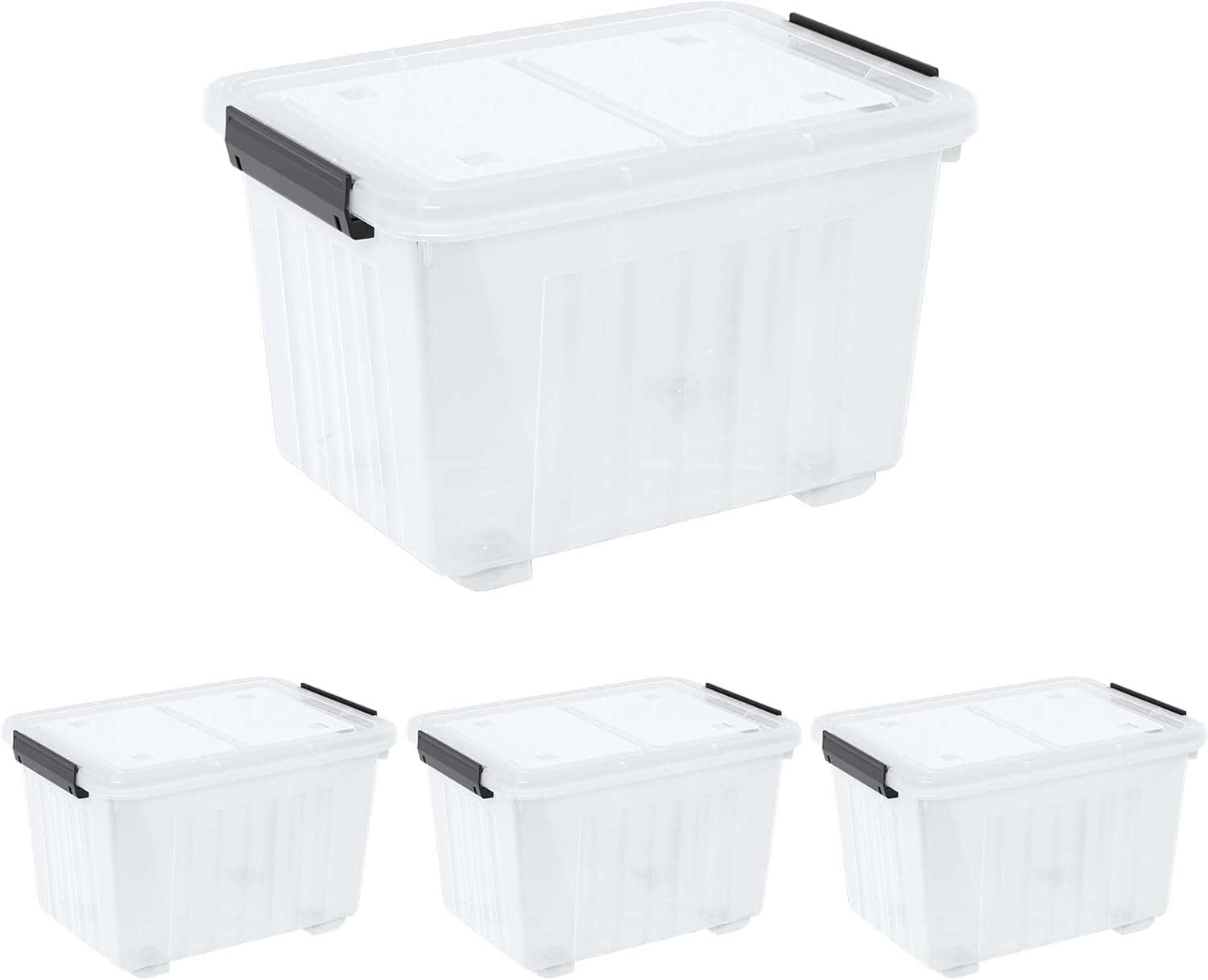 Kiddream 50 Quarts Clear Plastic Latching Boxes with Wheels, Large Storage Bins with Lids Set of 4