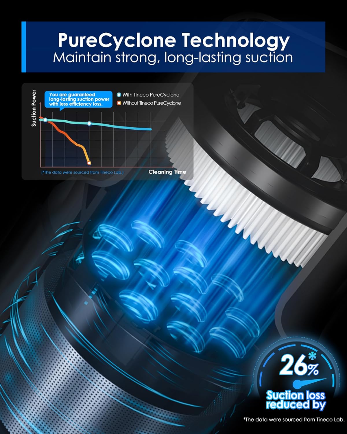 - Tineco PureCyclone Technology:Ensures strong, long-lasting suction by effectively separating air and dust, which keeps the filter cleaner for an extended period