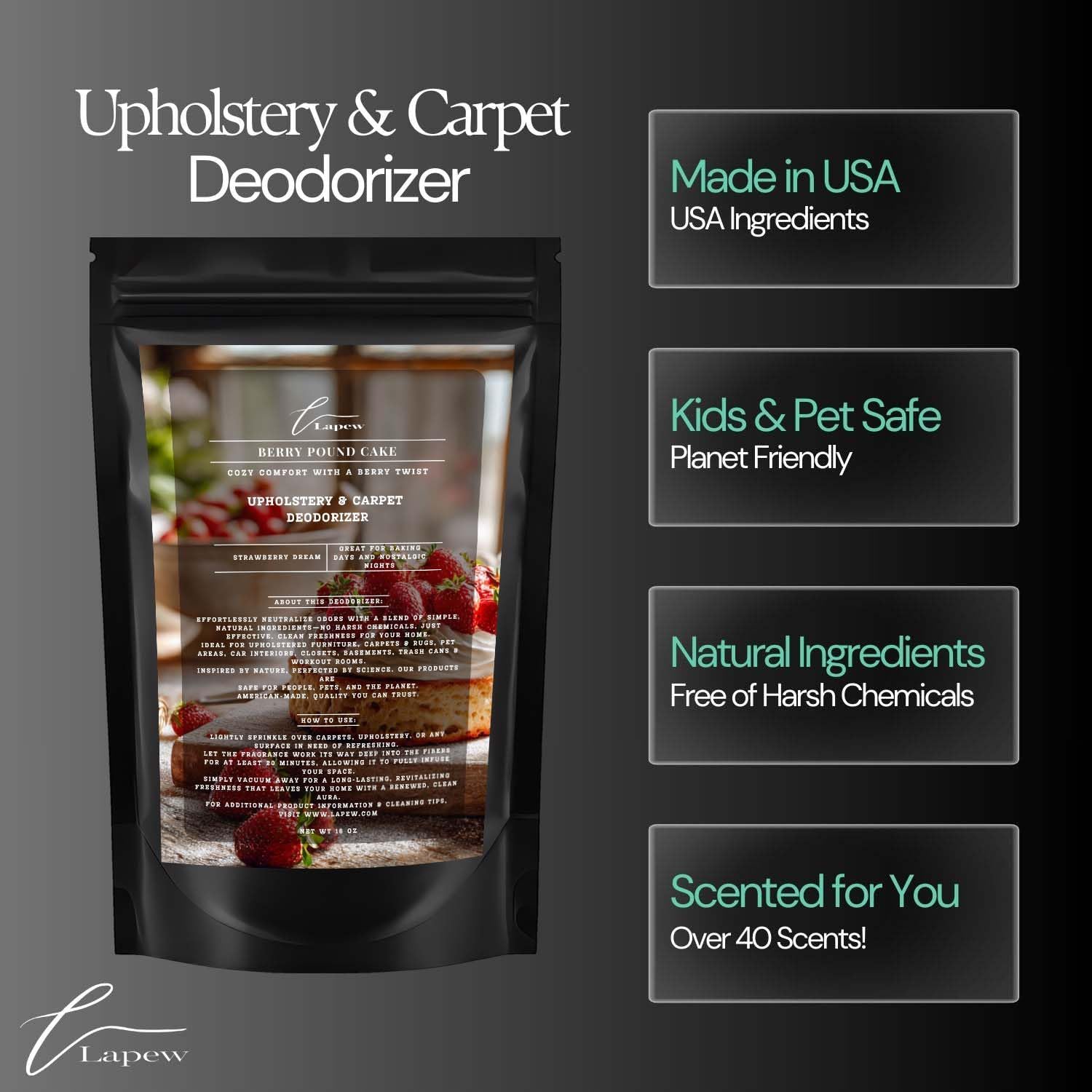 - Powerful Odor Eliminator for Strong Odors: Say goodbye to stubborn smells with the Lapew Berry Pound Cake Carpet Freshener Powder, specially formulated to tackle everyday room odors.