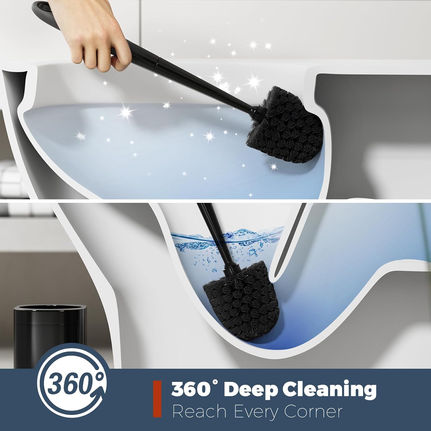 - 【360° Clean】The toilet brush head with classic design cleans the grooves and the lower edge of the toilet bowl