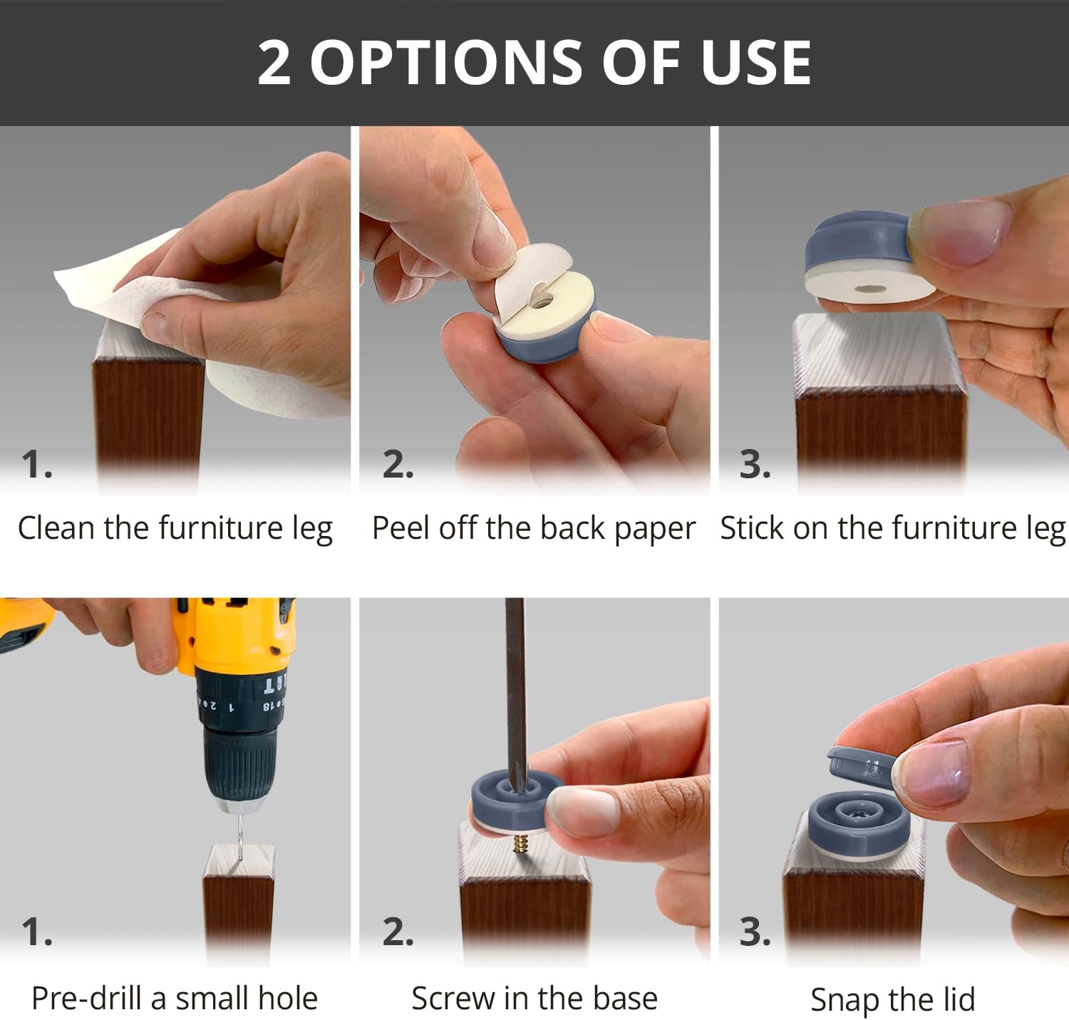 - ✌️ 2 OPTIONS OF USE - X-Protector Chair Sliders can be used by screwing in the furniture leg or just sticking on the furniture feet - YOU CHOOSE HOW TO USE OUR CHAIR LEG FLOOR PROTECTORS!