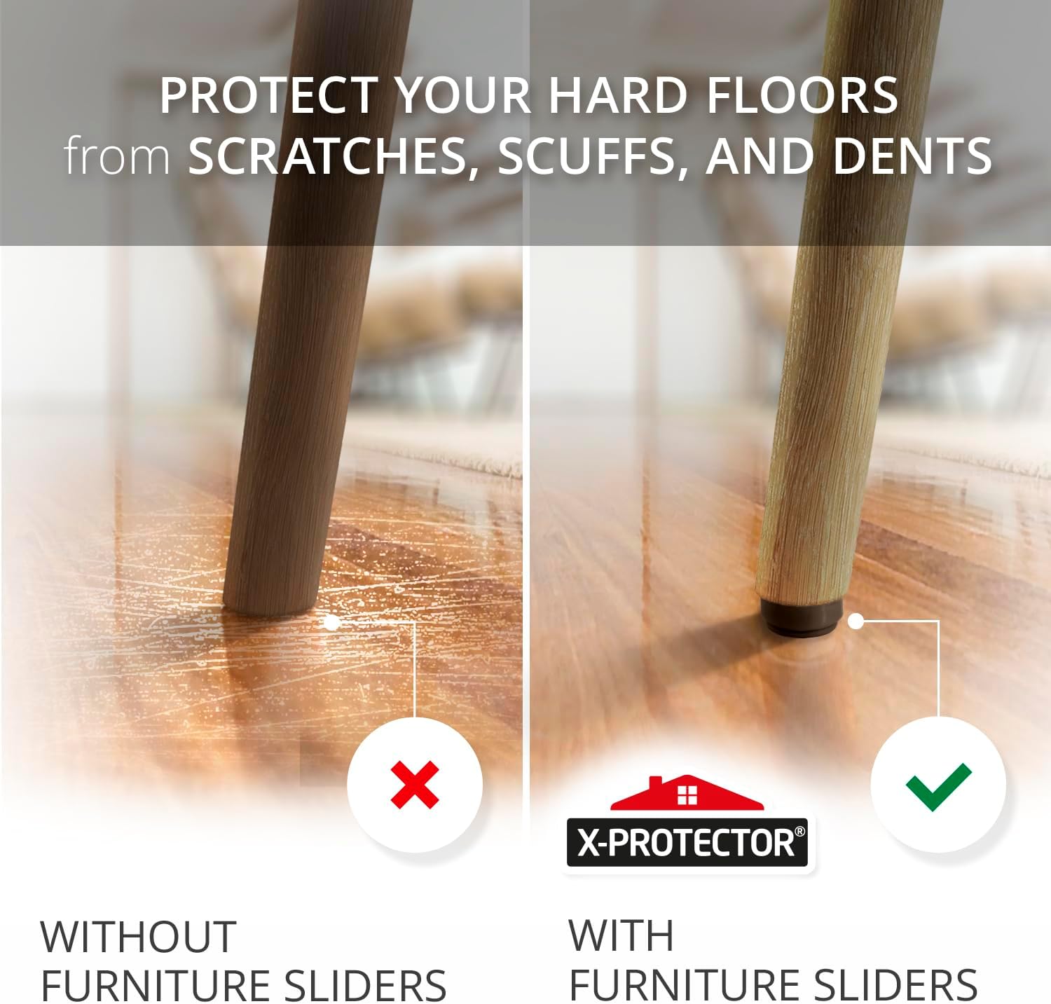 - ✌️ 2 OPTIONS OF USE - X-Protector Chair Sliders can be used by screwing in the furniture leg or just sticking on the furniture feet - YOU CHOOSE HOW TO USE OUR CHAIR LEG FLOOR PROTECTORS!