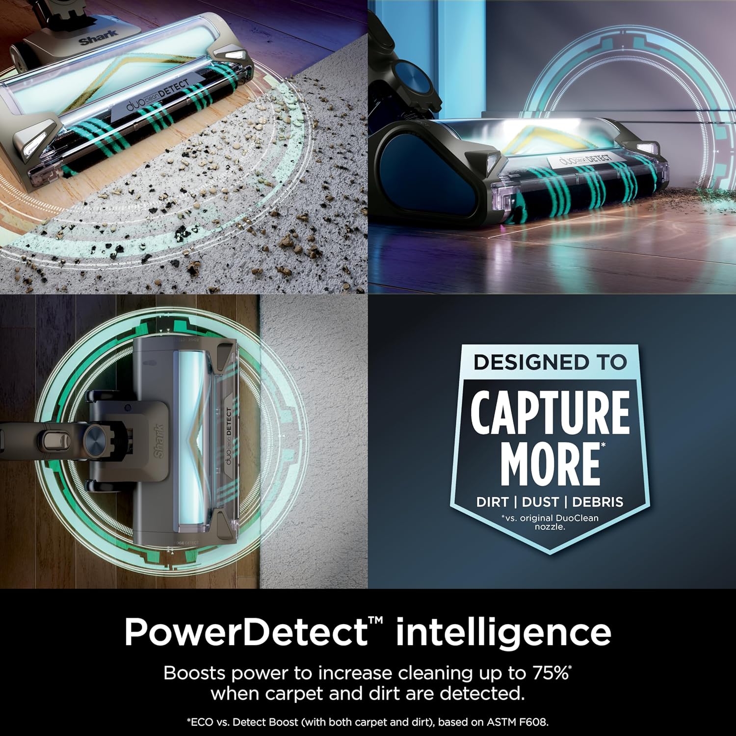 - DESIGNED TO CAPTURE MORE* DIRT, DUST, & DEBRIS: Shark’s redesigned DuoClean Detect nozzle features 2X brushrolls for ALL floors and ULTRA-POWERFUL hair pickup.(*vs. original DuoClean nozzle)