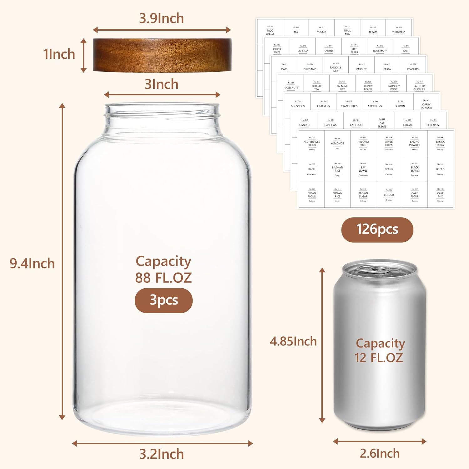 - Wide Opening Mason Jar Design: The 3 inch wide-mouth design allows you to store bigger stuffs such as eggs, cookies, laundry pods etc. It is more convenient to clean no matter in dishwasher or by hand.
