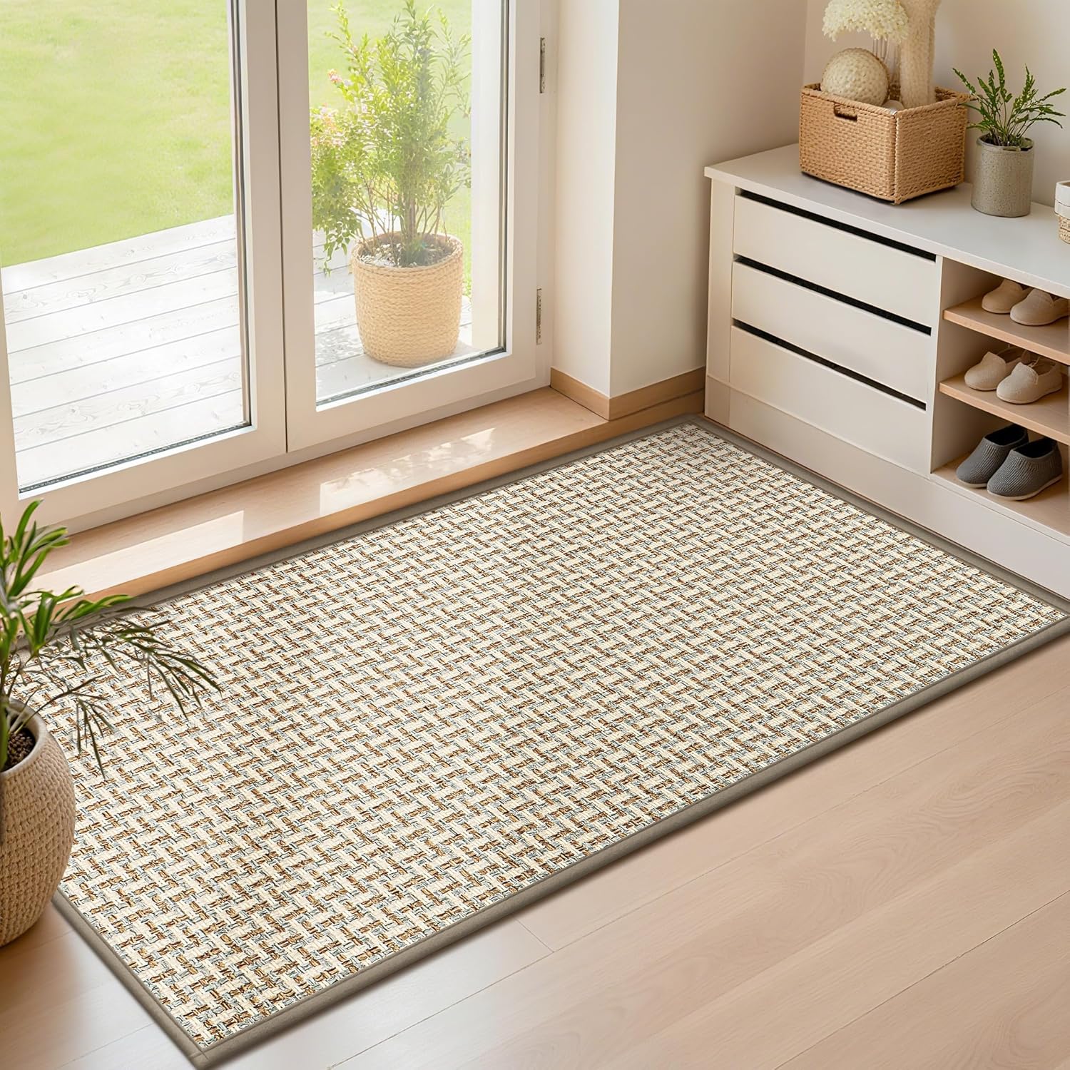 - Low Profile Design: Our front door rug feature a low profile design with a thickness of only 0.2" to fit under doors without curling up. Entryway rug is suitable for front/back doors, bathrooms, kitchens and any other high traffic areas