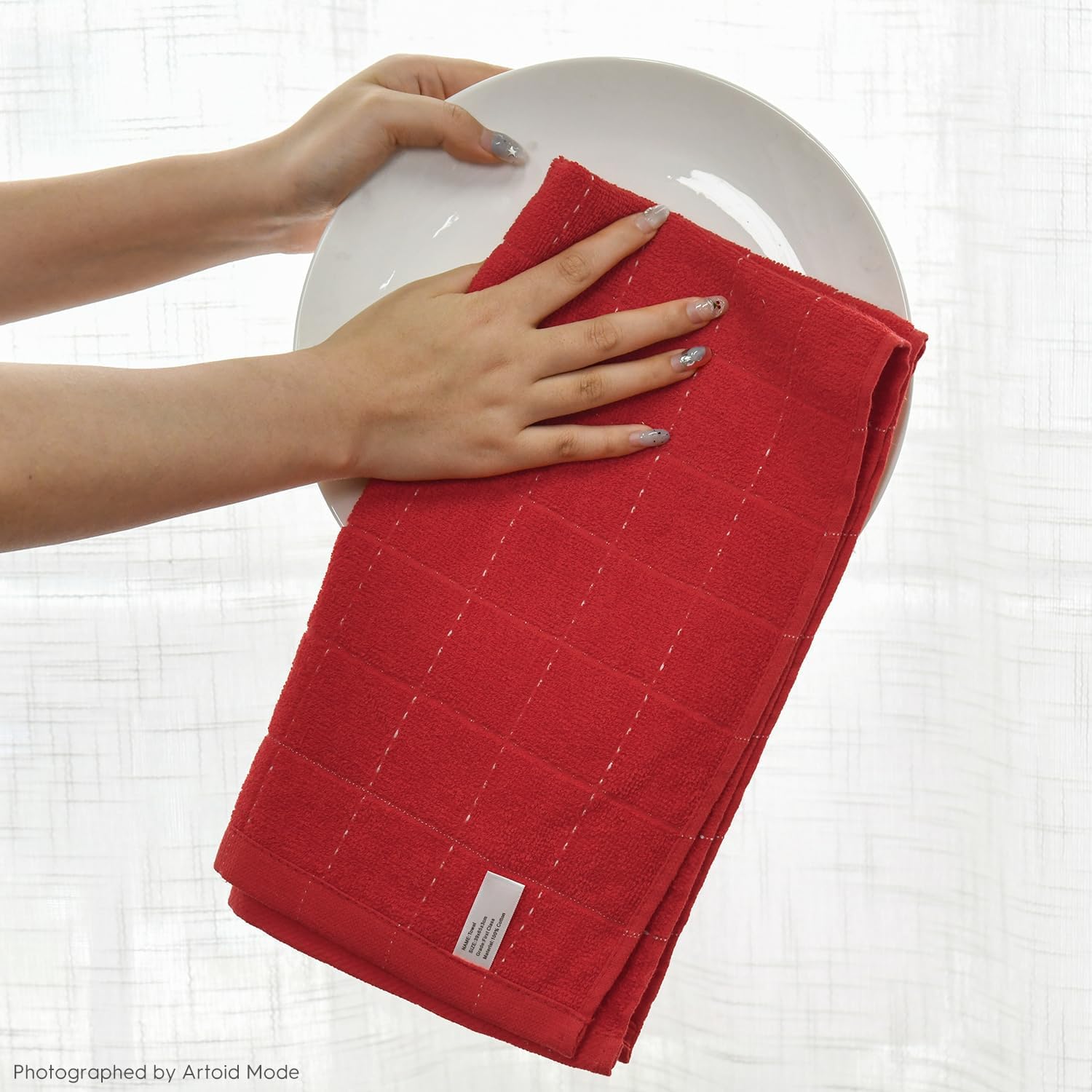 Artoid Mode Checkered Designed Cotton Beige Red Terry Kitchen Dish Towels, 15x25 Inch Soft Absorbent Quick Drying Cleaning Tea Towels Set of 4
