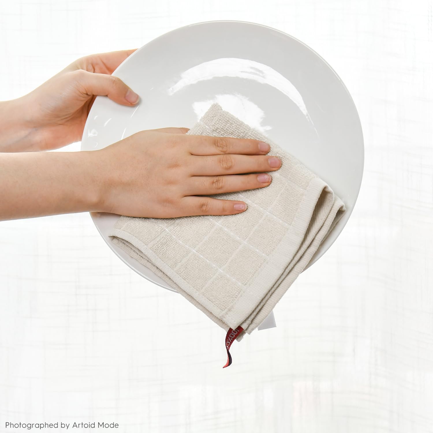 Artoid Mode Checkered Designed Cotton Beige Grey Black Terry Kitchen Dish Cloths, 12x12 Inch Soft Absorbent Quick Drying Kitchen Rags Set of 6