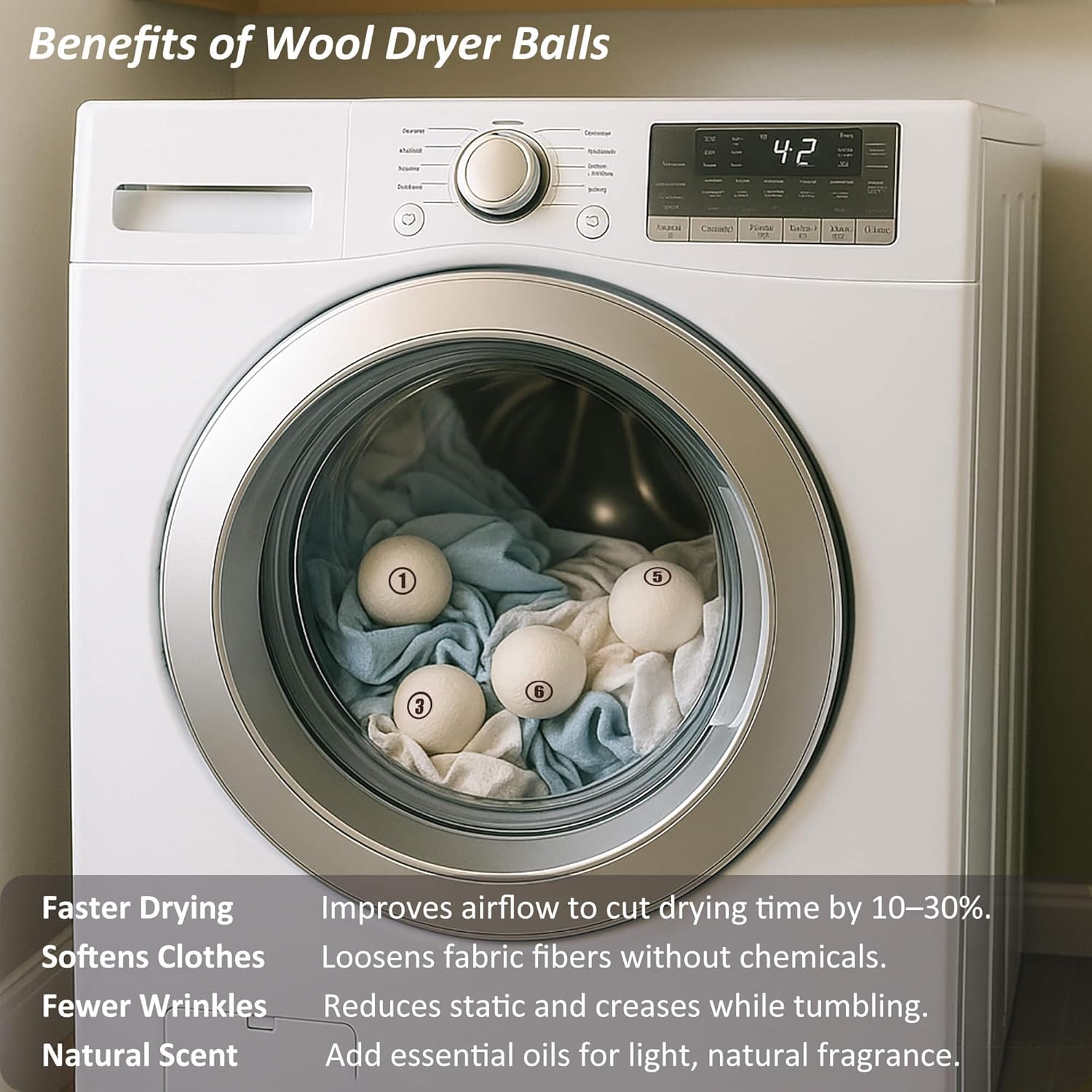 - ⏳ Saves Time & Energy – Cuts drying time by 20-40% (use 4 balls for small loads, 6 for large ones). Lower energy bills and faster laundry days!