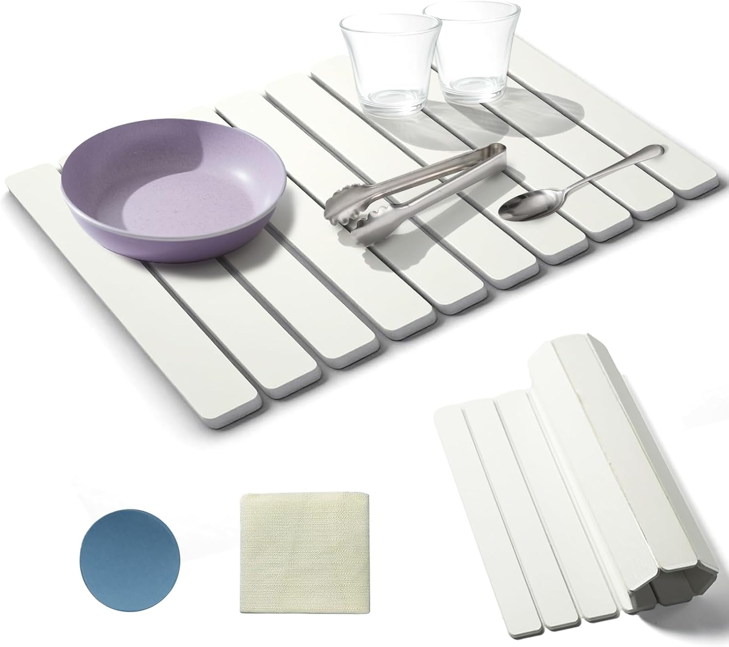 - Heat-Resistant (450°F) & Multi-Use - One Mat, Endless Jobs. More than just a dish drying mat! It handles temperatures up to 450°F, making it a great counter protector for hot pans, and suitable for the kitchen counter to place washed dishes, cups, milk bottles, knives, forks, spoons, and other tableware. Use it as a bath mat, pet feeding mat, plant saucer, or even an outdoor porch mat. Versatile enough for kitchens, bathrooms, patios—you name it