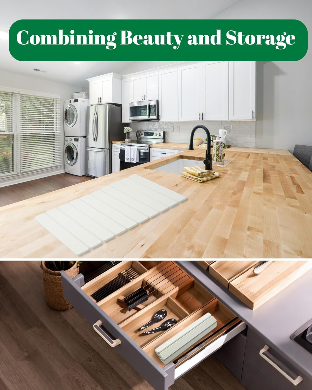 - Aesthetic and compact design - Size:23’’(L)*15.3’’(W). The foldable stone drying mat rolls up tightly for easy storage in a drawer. The foldable design takes up 70% less space than rigid racks. The exquisite white appearance suits various decoration styles, such as Bohemian, Coastal, Hamptons, modern, and Country cottage style