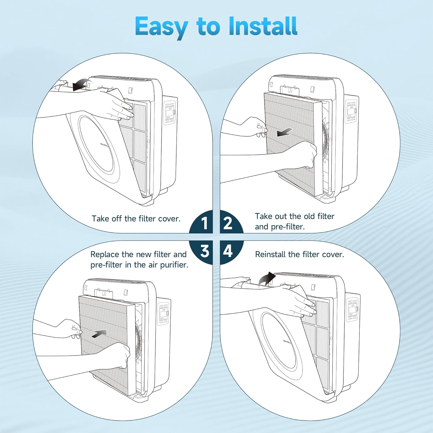 - Complete Maintenance Package:1 washable fine mesh pre-filter+2 Premium filters (annual replacement) + 4 carbon filters (biannual renewal) ensuring uninterrupted air purification