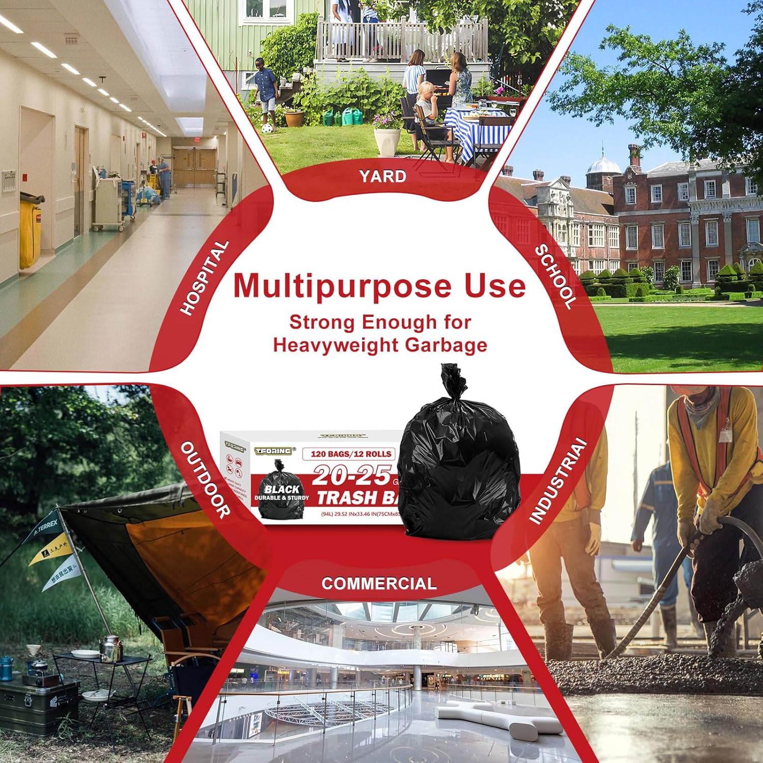 Black Trash Bags 20-25 Gallon 120 Count - 30" x 33" Large Kitchen Garbage Bags, 20+ Gallon Trash Can Liners Unscented, Multipurpose for Home, Office, Daily Household Use