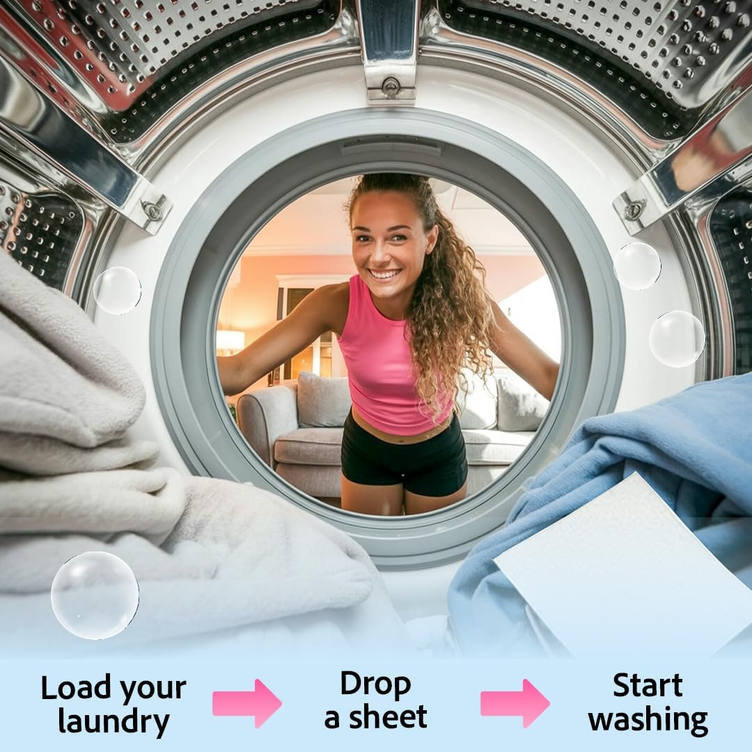- EASY TO USE, POWERFUL CLEAN: Each pre-measured laundry sheets detergent works in all washing machines (HE included), with hot or cold water, and even for hand washing. The power sheets laundry detergent fights odors, lift stains, and soften clothes – no measuring, no mess.
