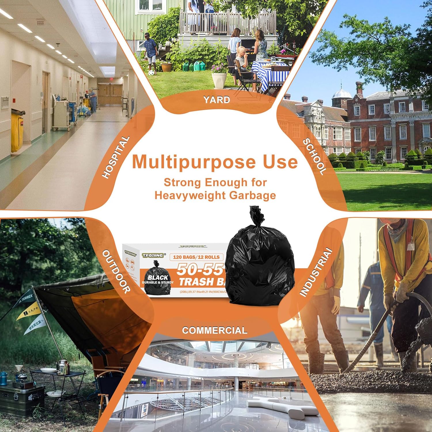 50-55 Gallon Black Trash Bags 120 Count - 40''x50'' Extra Large 50+ Gallon Garbage Bags,Unscented Strong Huge Can Liners for Construction Industrial Yard Outdoor Commercial