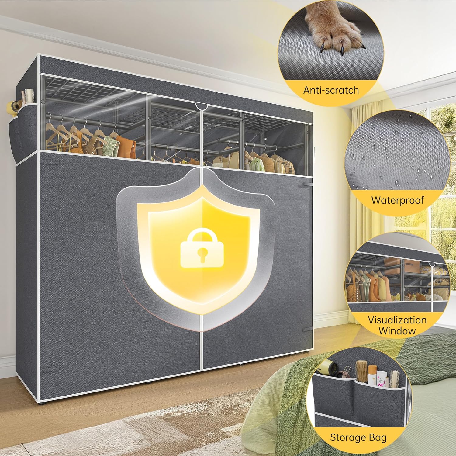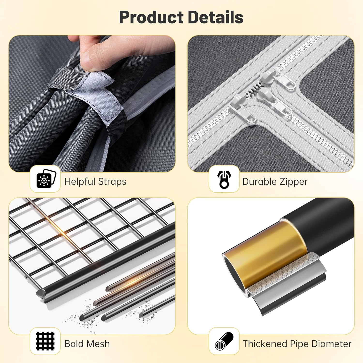 - Premium Protective Cover with Side Pockets: The heavy duty zippered cover of clothes rack with cover protects clothes from scratches and sunlight.Reinforced side pockets store small items like socks, belts, and accessories, keeping them within easy reach.