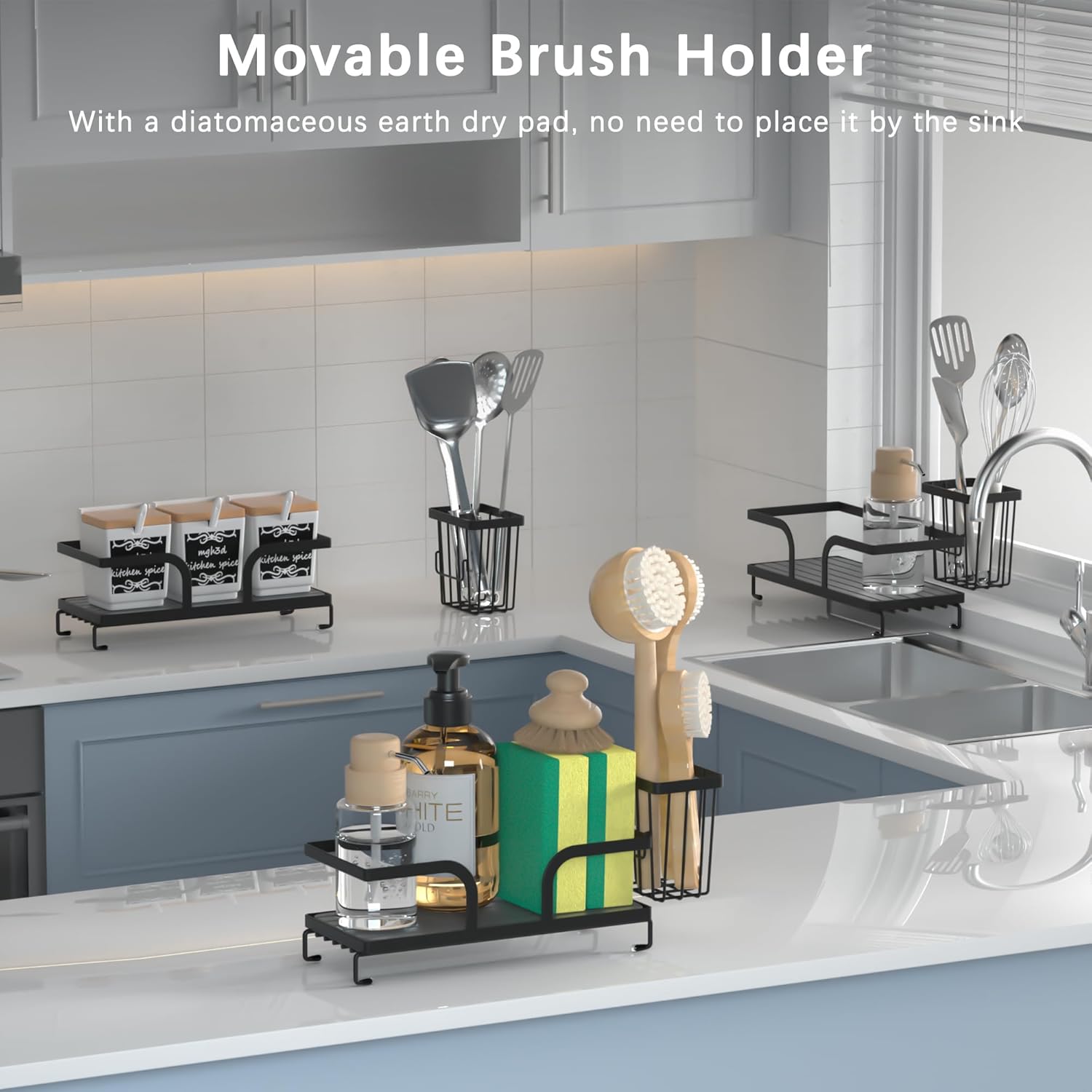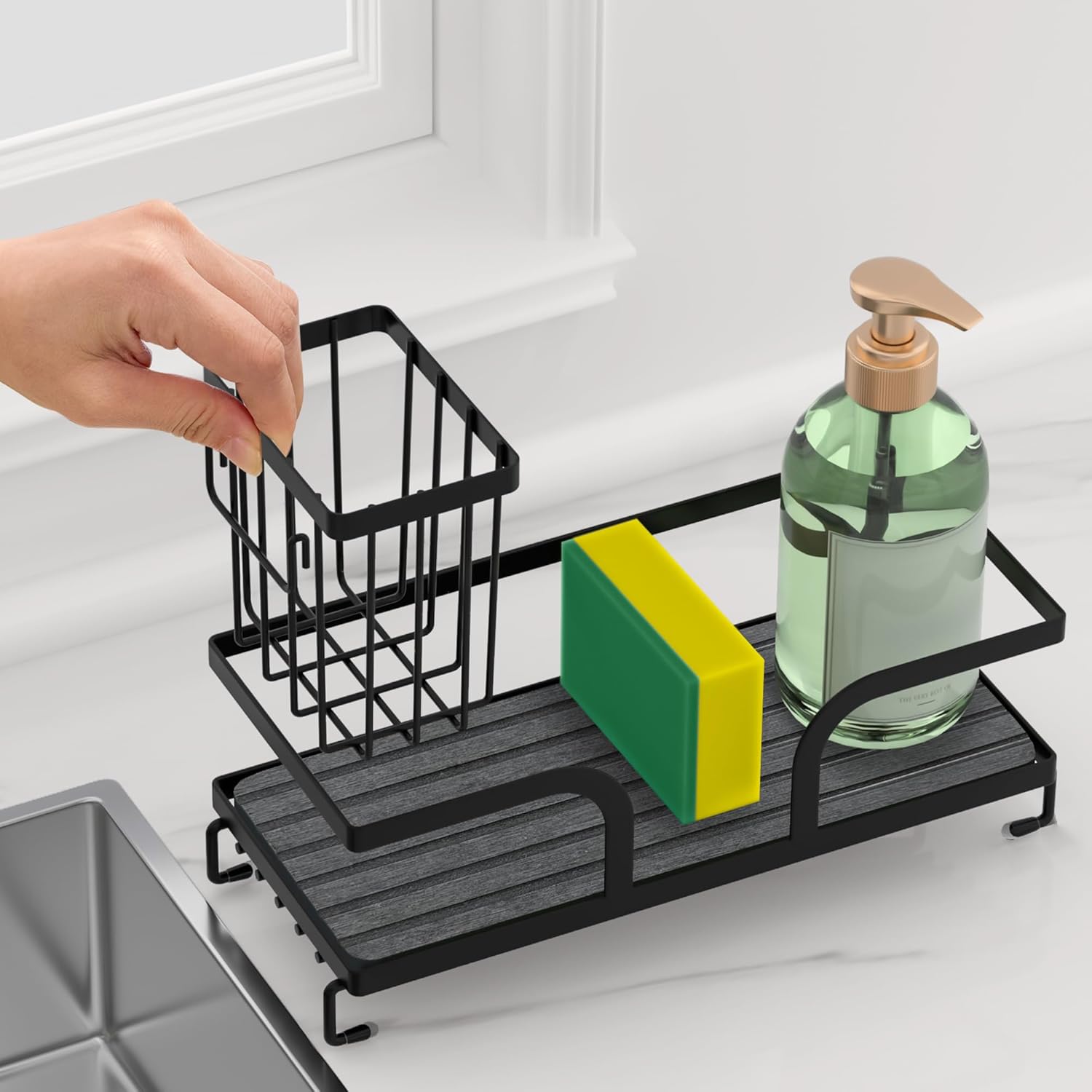 - SPACE-SAVING: Compact countertop organizer keeps cleaning supplies neatly arranged while maximizing your sink space